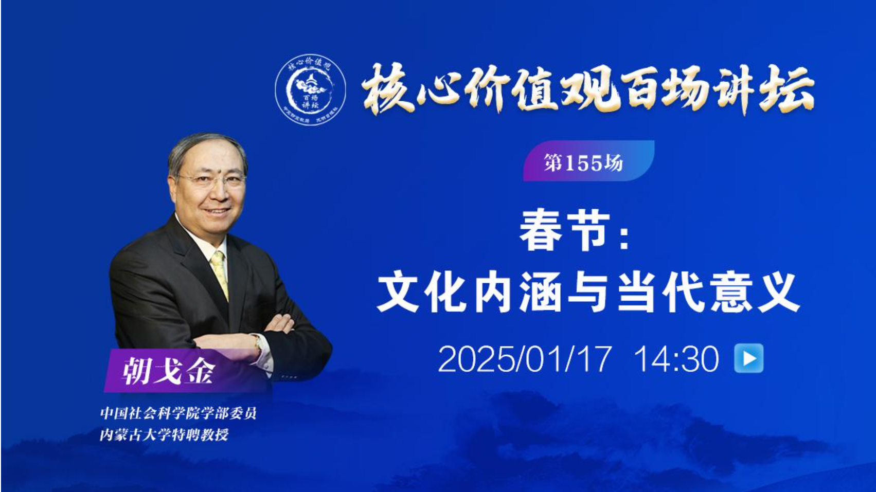 新華社北京1月17日電(記者 孫蕾)由中宣部宣教局、光明日報社共同主辦的“核心價值觀百場講壇”第155場活動1月17日在中國非物質(zhì)文化遺產(chǎn)館舉行。中國社會科學院學部委員、內(nèi)蒙古大學特聘教授朝戈金作題為《春節(jié):文化內(nèi)涵與當代意義》的演講。