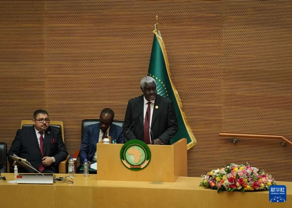2月15日,在埃塞俄比亞首都亞的斯亞貝巴,非盟委員會(huì)主席法基在開幕式上發(fā)言。