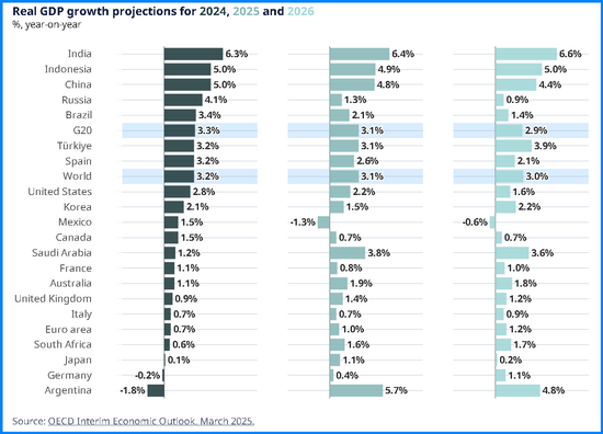 新華社巴黎3月17日電(記者李文昕)經(jīng)濟(jì)合作與發(fā)展組織(經(jīng)合組織)17日發(fā)布中期經(jīng)濟(jì)展望報(bào)告,預(yù)計(jì)2025年和2026年全球經(jīng)濟(jì)將增長3.1%和3.0%,較去年12月的預(yù)測值分別下調(diào)0.2和0.3個(gè)百分點(diǎn)。