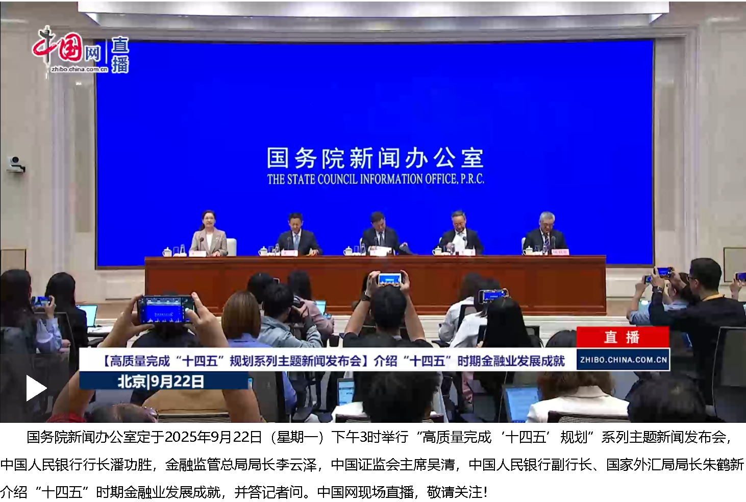 9月22日,國務(wù)院新聞辦公室在北京舉行“高質(zhì)量完成‘十四五’規(guī)劃”系列主題新聞發(fā)布會(huì),中國人民銀行行長(zhǎng)潘功勝,金融監(jiān)管總局局長(zhǎng)李云澤,中國證監(jiān)會(huì)主席吳清,中國人民銀行副行長(zhǎng)、國家外匯局局長(zhǎng)朱鶴新介紹“十四五”時(shí)期金融業(yè)發(fā)展情況,并答記者問。新華社記者 李鑫 攝