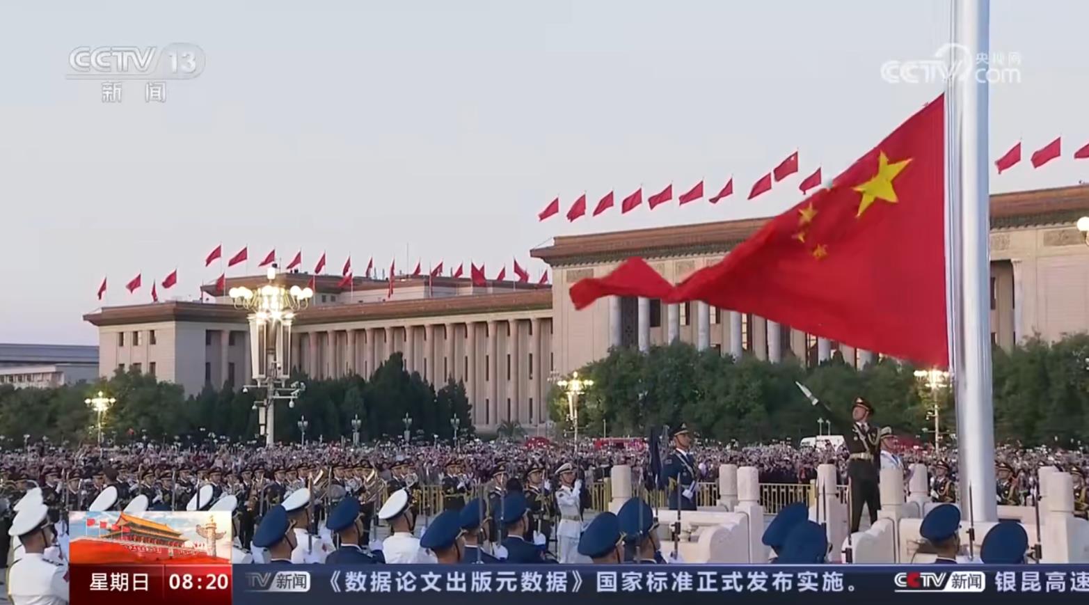 “向國旗——敬禮!”6時9分,隨著儀仗隊員的口號聲,《義勇軍進(jìn)行曲》響徹天安門廣場。