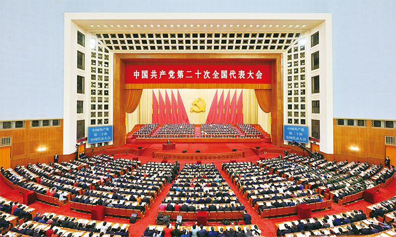 黨的二十大提出開辟馬克思主義中國(guó)化時(shí)代化新境界的重大任務(wù),強(qiáng)調(diào)這是當(dāng)代中國(guó)共產(chǎn)黨人的莊嚴(yán)歷史責(zé)任。圖為2022年10月16日,中國(guó)共產(chǎn)黨第二十次全國(guó)代表大會(huì)在北京人民大會(huì)堂開幕。 新華社記者 岳月偉/攝