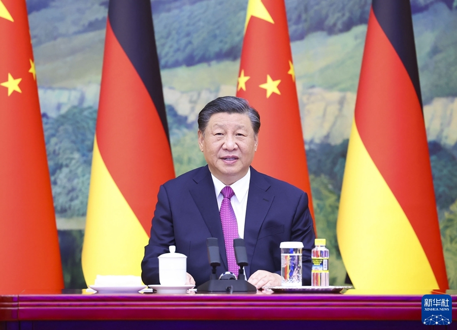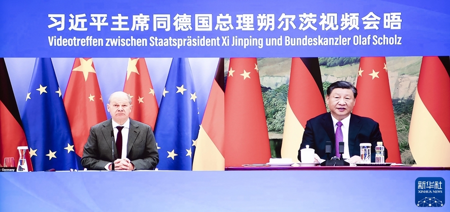 11月3日下午,國(guó)家主席習(xí)近平同德國(guó)總理朔爾茨舉行視頻會(huì)晤。新華社記者 黃敬文 攝