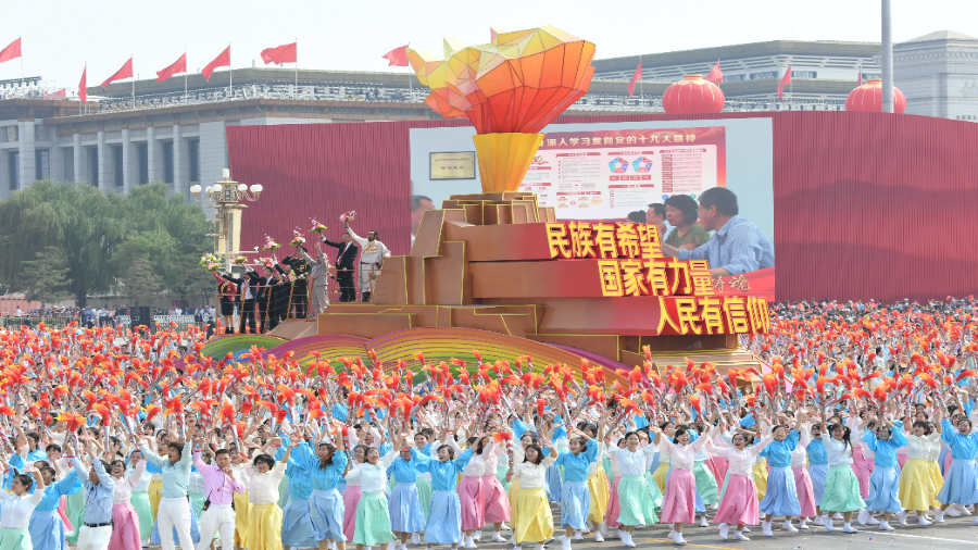 篇篇賀詞,團(tuán)結(jié)是“大江南北披上紅色盛裝,人們臉上洋溢著自豪的笑容,《我和我的祖國(guó)》在大街小巷傳唱”;是“逆行出征的豪邁”“頑強(qiáng)不屈的堅(jiān)守”“患難與共的擔(dān)當(dāng)”“英勇無(wú)畏的犧牲”“守望相助的感動(dòng)”;是“廣大軍民不畏艱險(xiǎn),同心協(xié)力抗洪救災(zāi)”……
