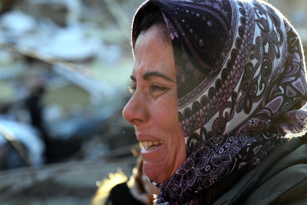 2月8日,在土耳其哈塔伊的一處地震廢墟,當?shù)鼐用竦却H人的消息。新華社記者沙達提攝
