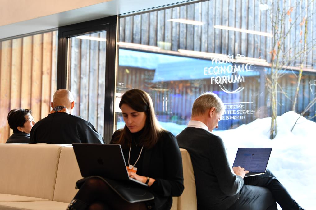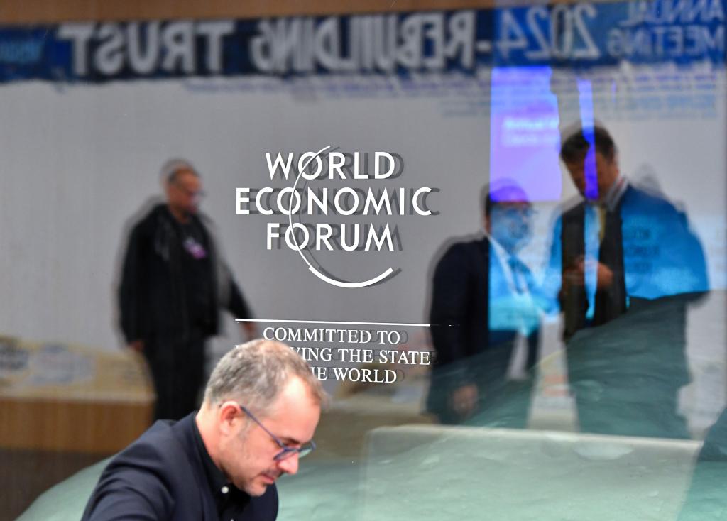 1月15日,在瑞士達(dá)沃斯,與會(huì)者參加世界經(jīng)濟(jì)論壇2024年年會(huì)。新華社記者連漪攝