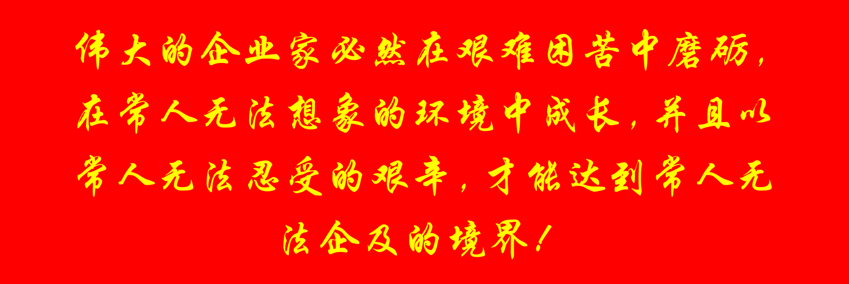 偉大的企業(yè)家必然在艱難困苦中磨礪,在常人無(wú)法想象的環(huán)境中成長(zhǎng),并且以常人無(wú)法忍受的艱辛,才能達(dá)到常人無(wú)法企及的境界!如果你能夠聚集一百人,你就是小悟水平的企業(yè);如果你能夠達(dá)到一千人,就是中悟的公司了;如果能夠讓一萬(wàn)人在你的集團(tuán)工作,可以達(dá)到大悟的標(biāo)準(zhǔn)了;超越十萬(wàn)人能夠讓幾十萬(wàn)人在你的麾下工作,大徹大悟的頂峰已經(jīng)在你的腳下了,那是什么概念呢?!