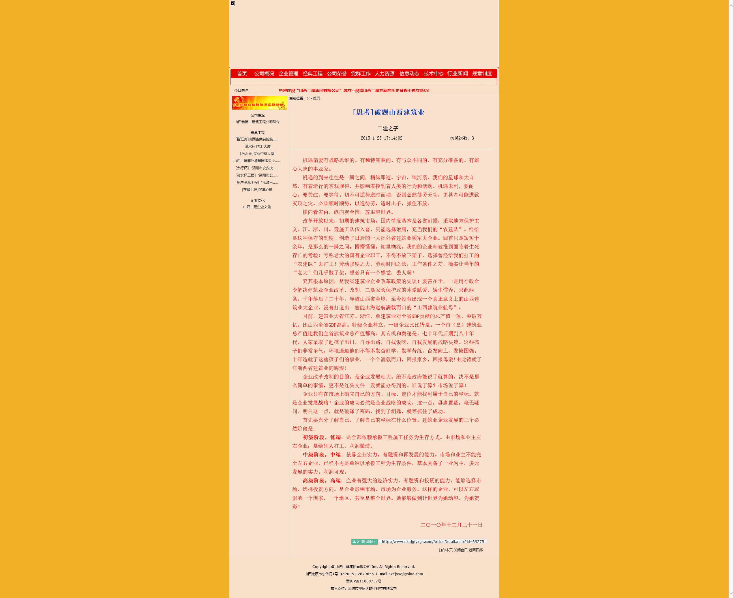 編者的話(huà):二○一○年末到蒞年初,山西二建正處在重大轉(zhuǎn)折的關(guān)鍵時(shí)刻。