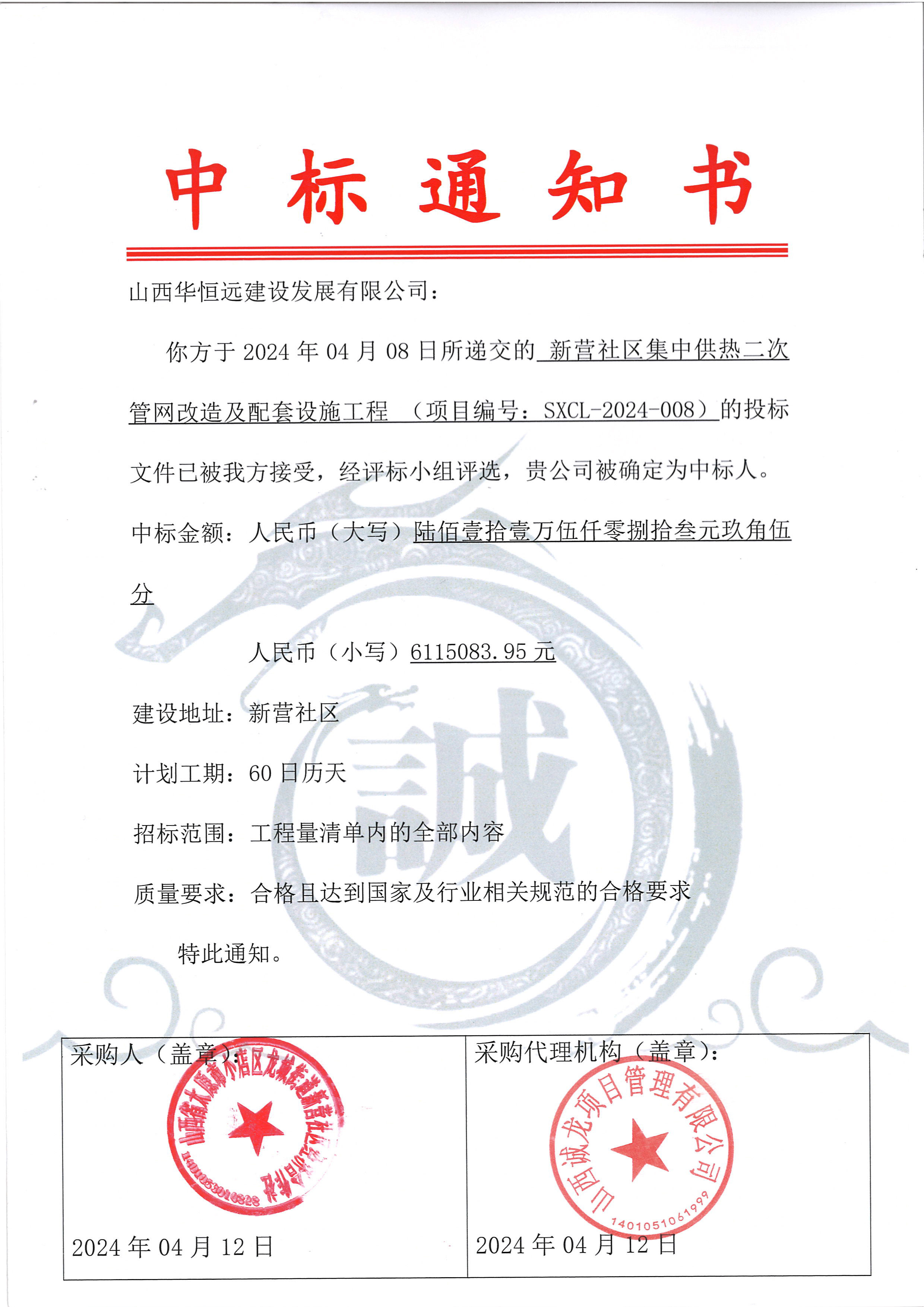 新營社區(qū)集中供熱二次管網(wǎng)改造及配套設(shè)施工程