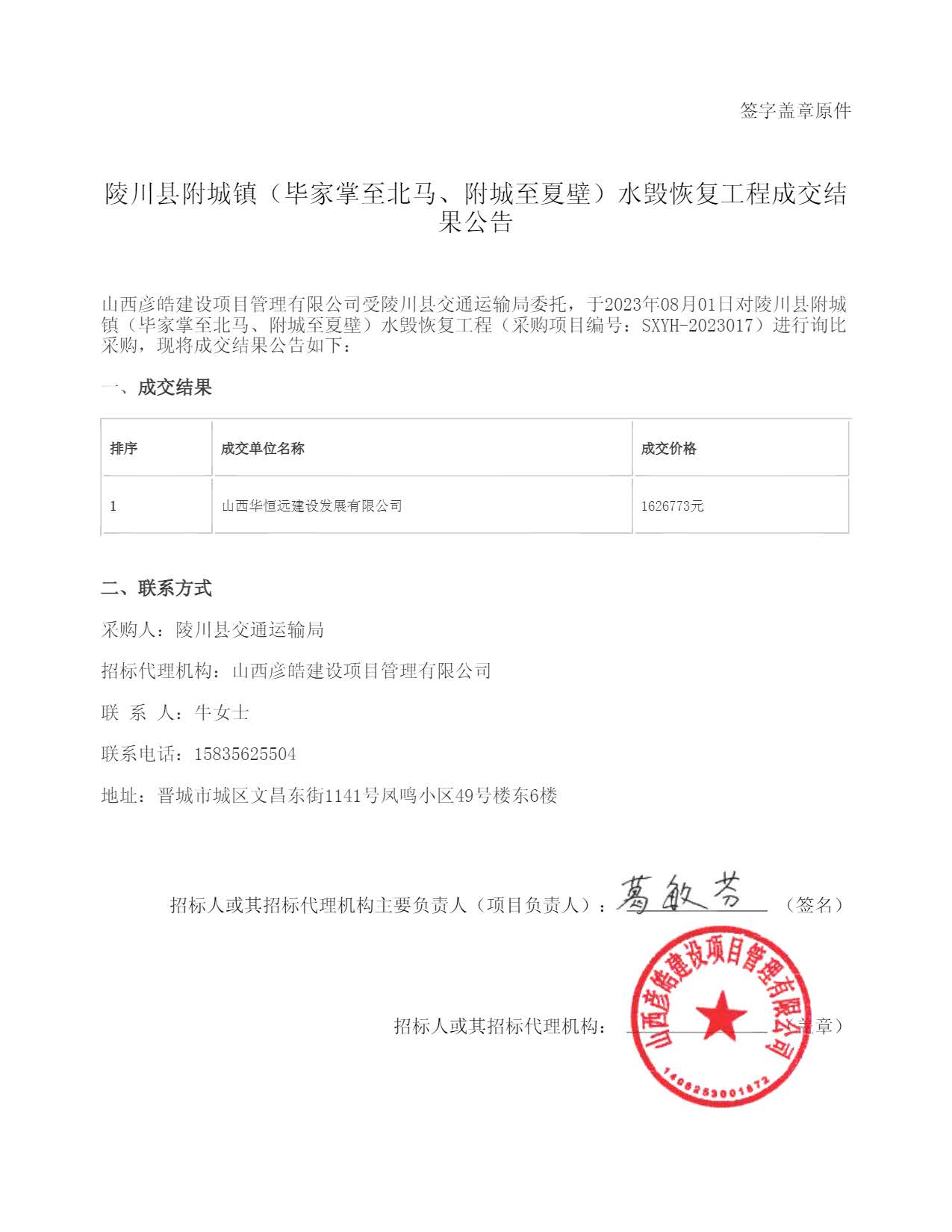 陵川縣附城鎮(zhèn)(畢家掌至北馬、附城至夏壁)水毀恢復(fù)工程