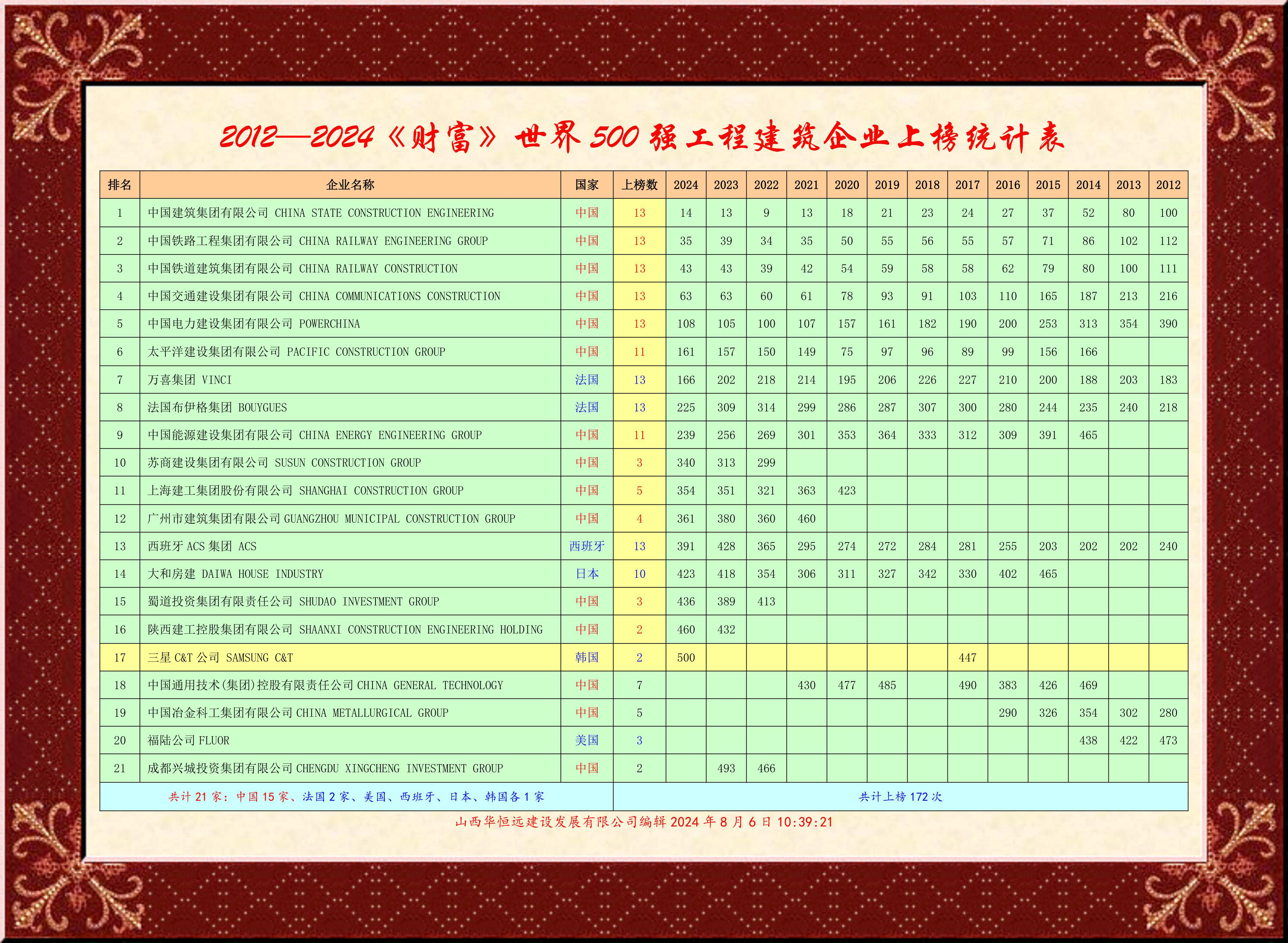 近日,2024年度《財富》世界500強榜單正式公布。廣州市建筑集團有限公司(以下稱為:廣州建筑集團)以3001.82億元人民幣的營業(yè)收入,躋身第361位,較2023年上升19位。