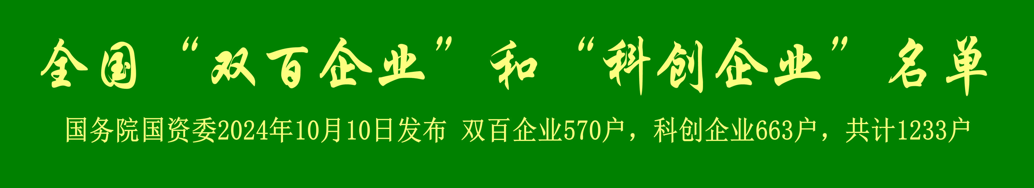 國(guó)務(wù)院國(guó)資委公布了新一期中央企業(yè)和地方國(guó)企雙百?gòu)?qiáng)和科技創(chuàng)新企業(yè)名錄,共計(jì)1233家。其中:雙百570家,科創(chuàng)663家。