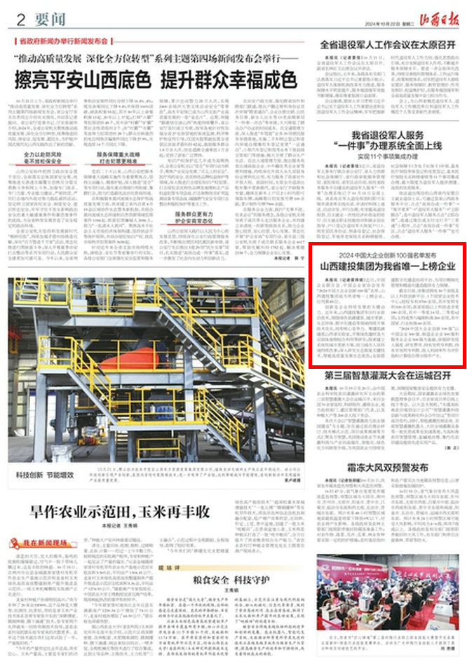 本報訊(記者晉帥妮)近日,中國企業(yè)聯(lián)合會、中國企業(yè)家協(xié)會發(fā)布“2024中國大企業(yè)創(chuàng)新100強”名單,山西建投集團成為我省唯一上榜企業(yè),位列第85位。