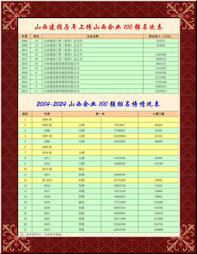 4 山西建設投資集團有限公司 14210915 13603913 4
