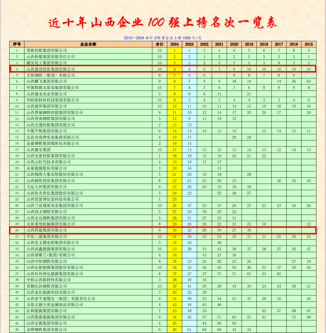 11月22日,山西省企業(yè)聯(lián)合會、山西省企業(yè)家協(xié)會召開以“弘揚企業(yè)家精神,培育發(fā)展新質(zhì)生產(chǎn)力”為主題的山西企聯(lián)第32次年會暨2024年山西100強企業(yè)發(fā)布會。山西建投四建集團(tuán)憑借堅實發(fā)展榮列2024年山西企業(yè)100強排行榜第30位(較去年上升2位),連續(xù)6年入圍百強榜單,并榮獲“2023年度功勛企業(yè)”稱號。