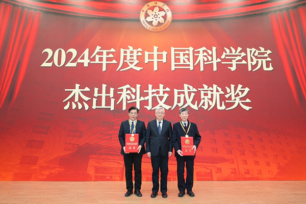 侯建國為獲得2024年度中國科學(xué)院杰出科技成就獎個人成就獎的陳立泉院士、陳仙輝院士頒獎
