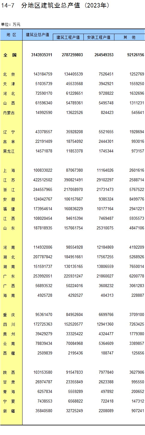 數(shù)據(jù)還顯示,2024年全國(guó)建筑業(yè)總產(chǎn)值326501億元,同比增長(zhǎng)3.9%;全國(guó)建筑業(yè)房屋建筑施工面積136.8億平方米,同比下降10.6%。與2023年建筑業(yè)相關(guān)數(shù)據(jù)相較,2024年建筑業(yè)總產(chǎn)值增長(zhǎng)放緩,建筑業(yè)房屋建筑施工面積進(jìn)一步下降。