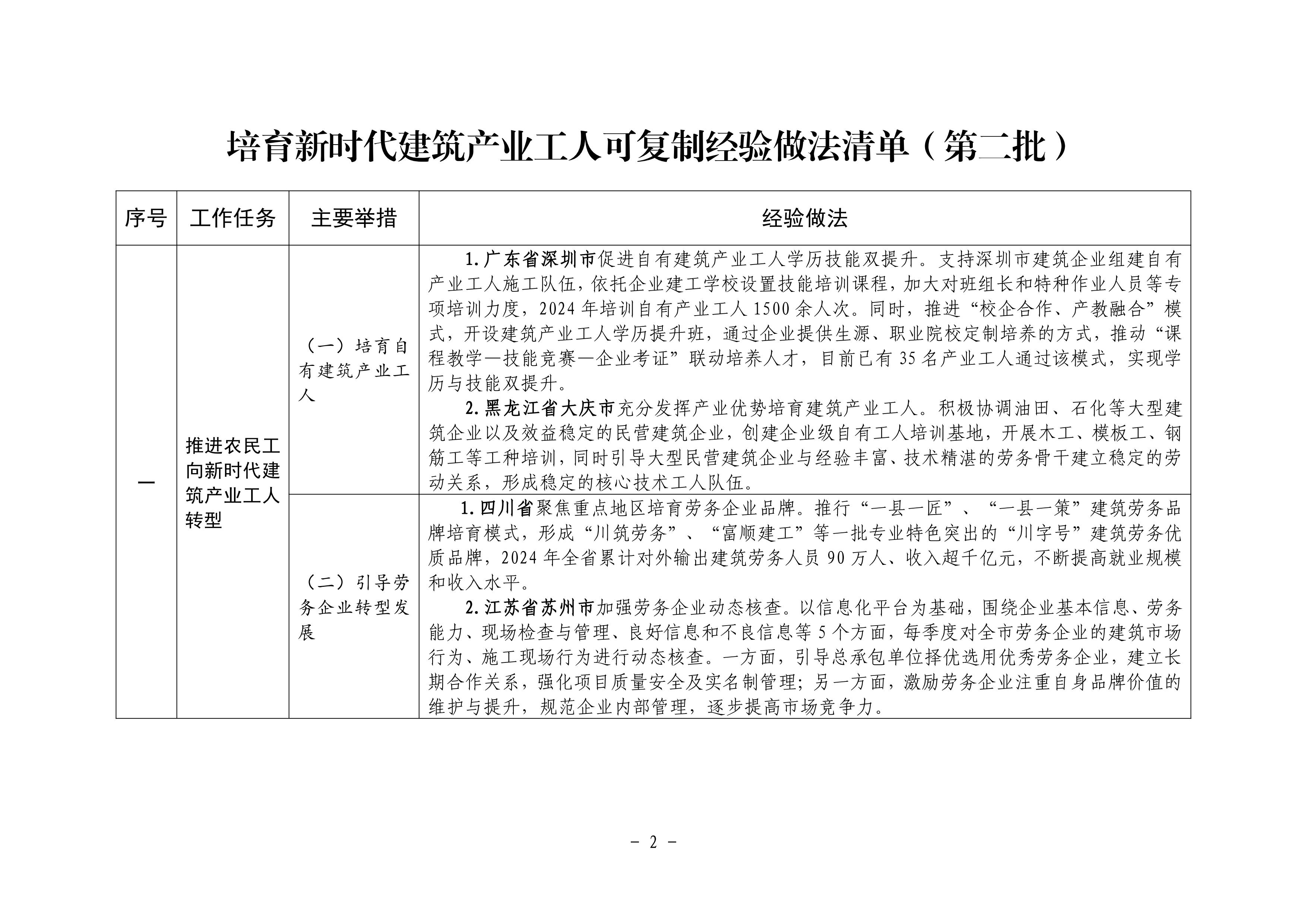 附件:培育新時代建筑產(chǎn)業(yè)工人可復(fù)制經(jīng)驗(yàn)做法清單(第二批)