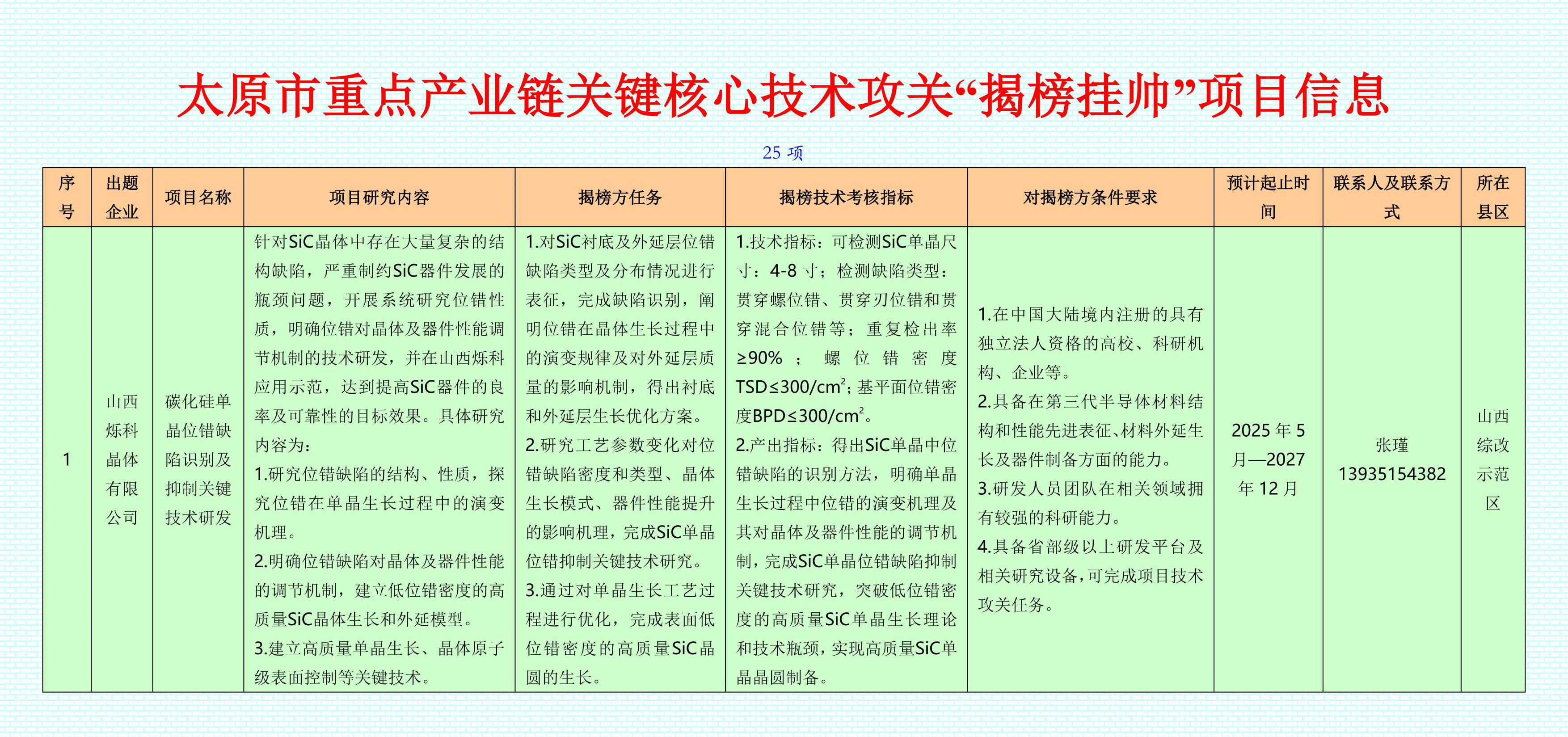 附件:1.太原市重點產(chǎn)業(yè)鏈關(guān)鍵核心技術(shù)攻關(guān)“揭榜掛帥”項目信息