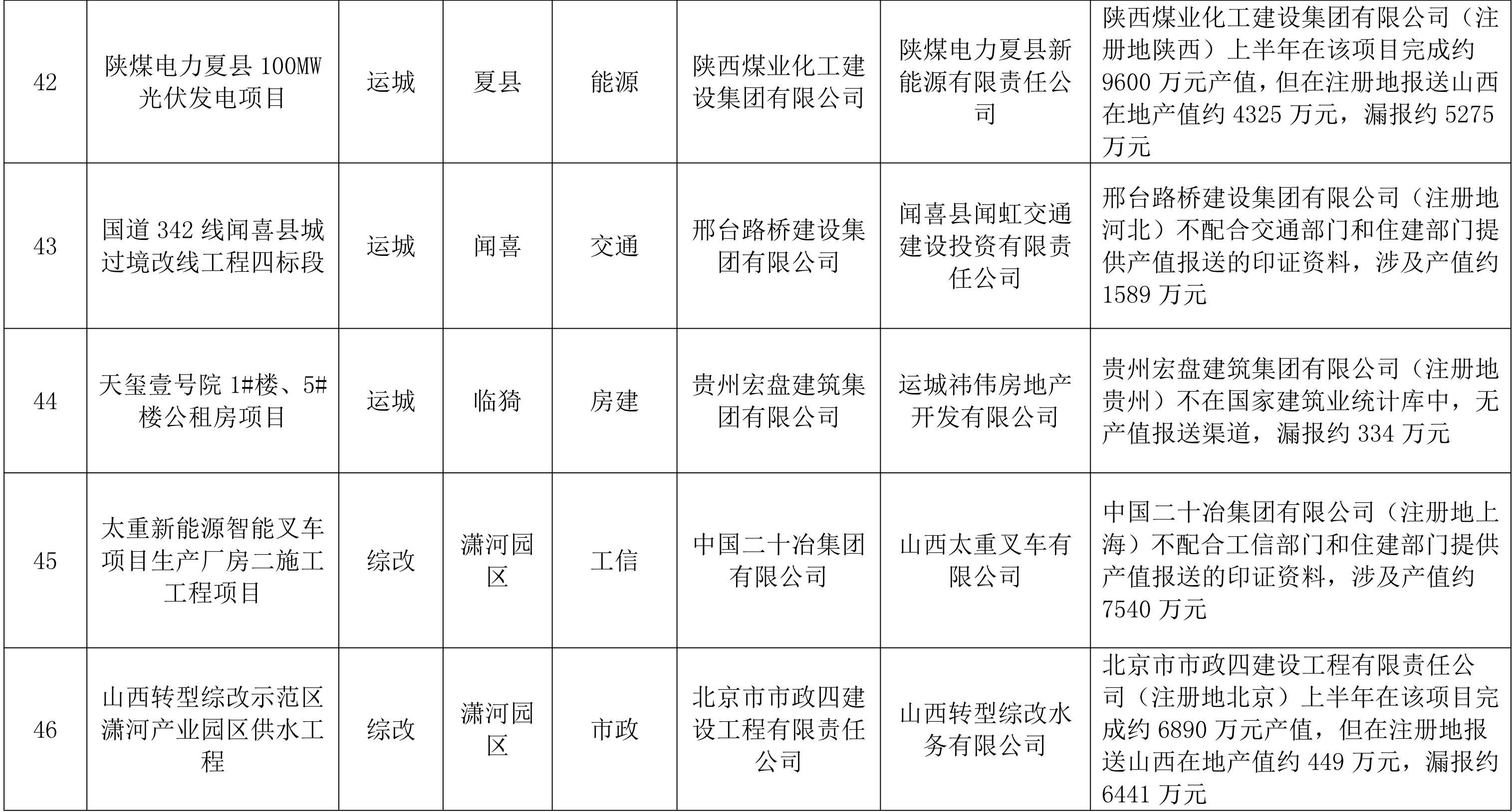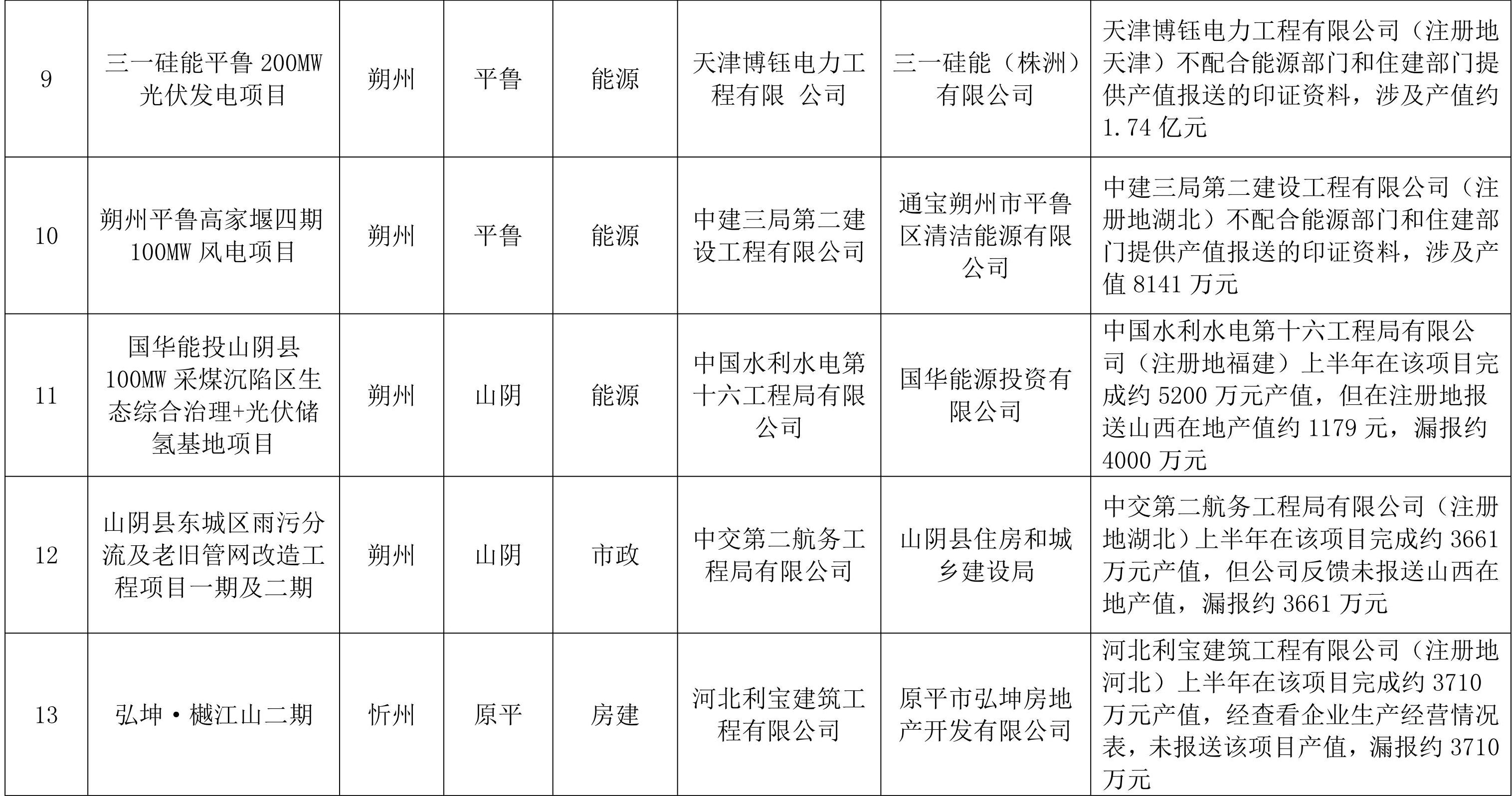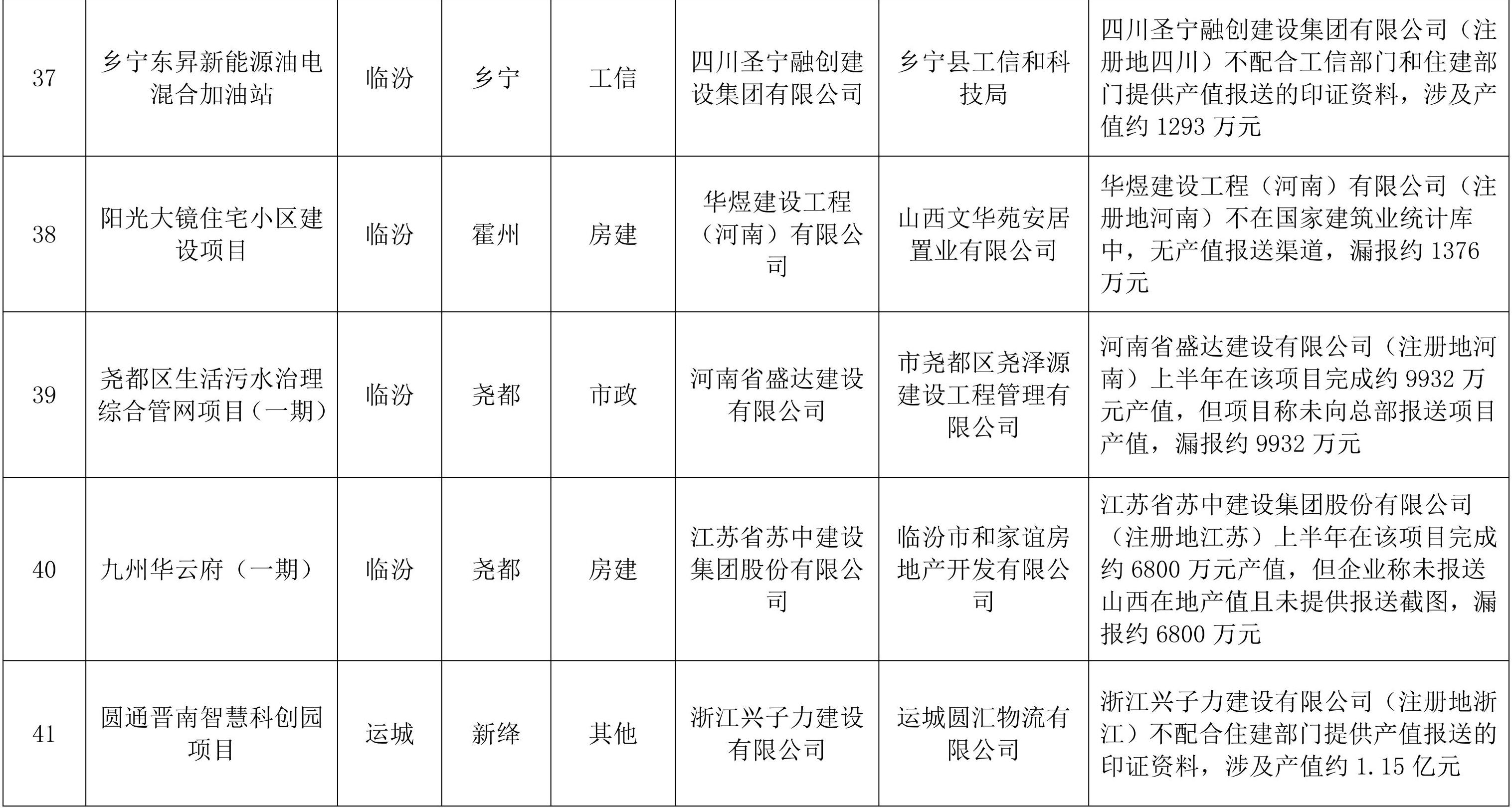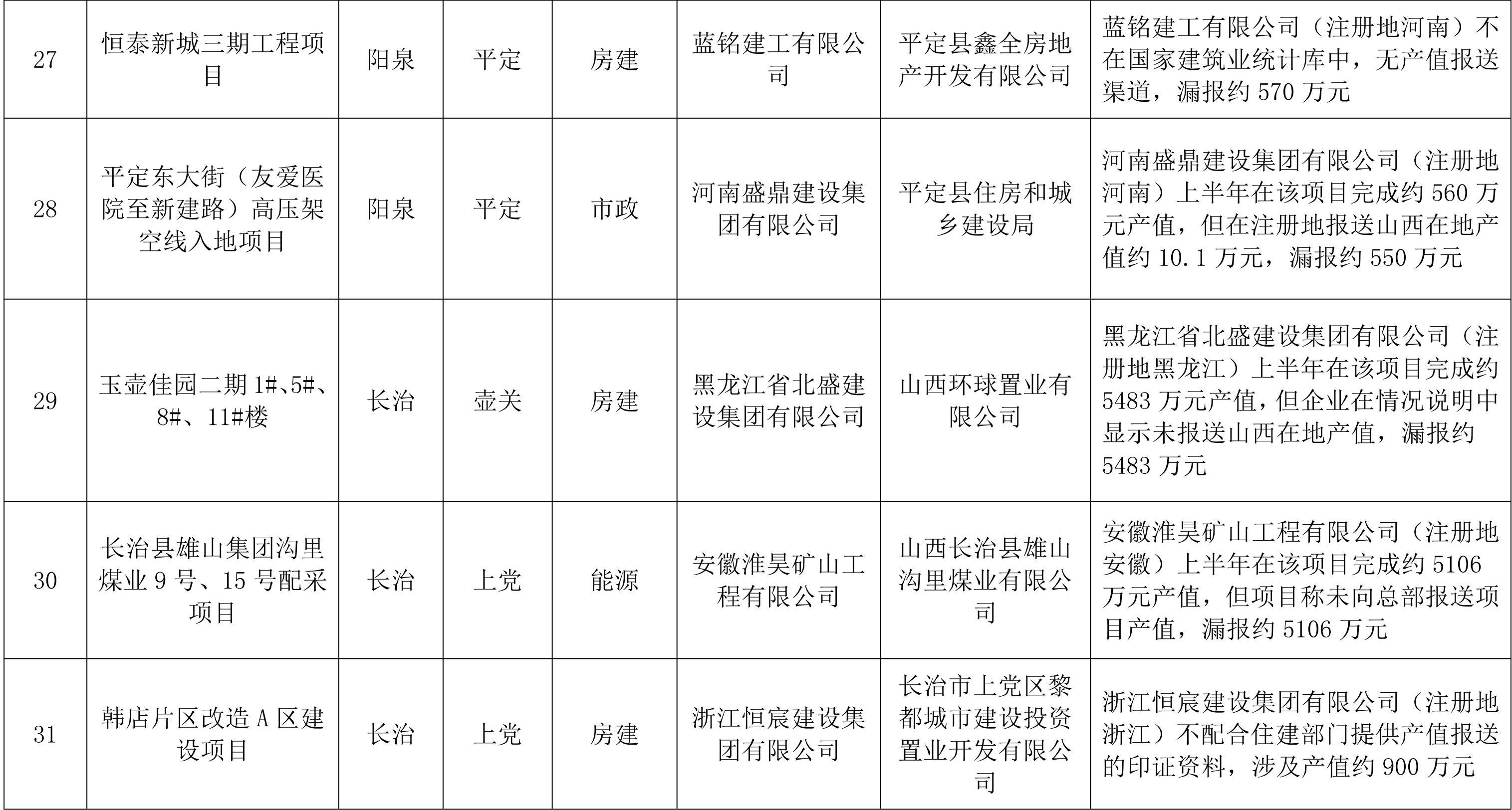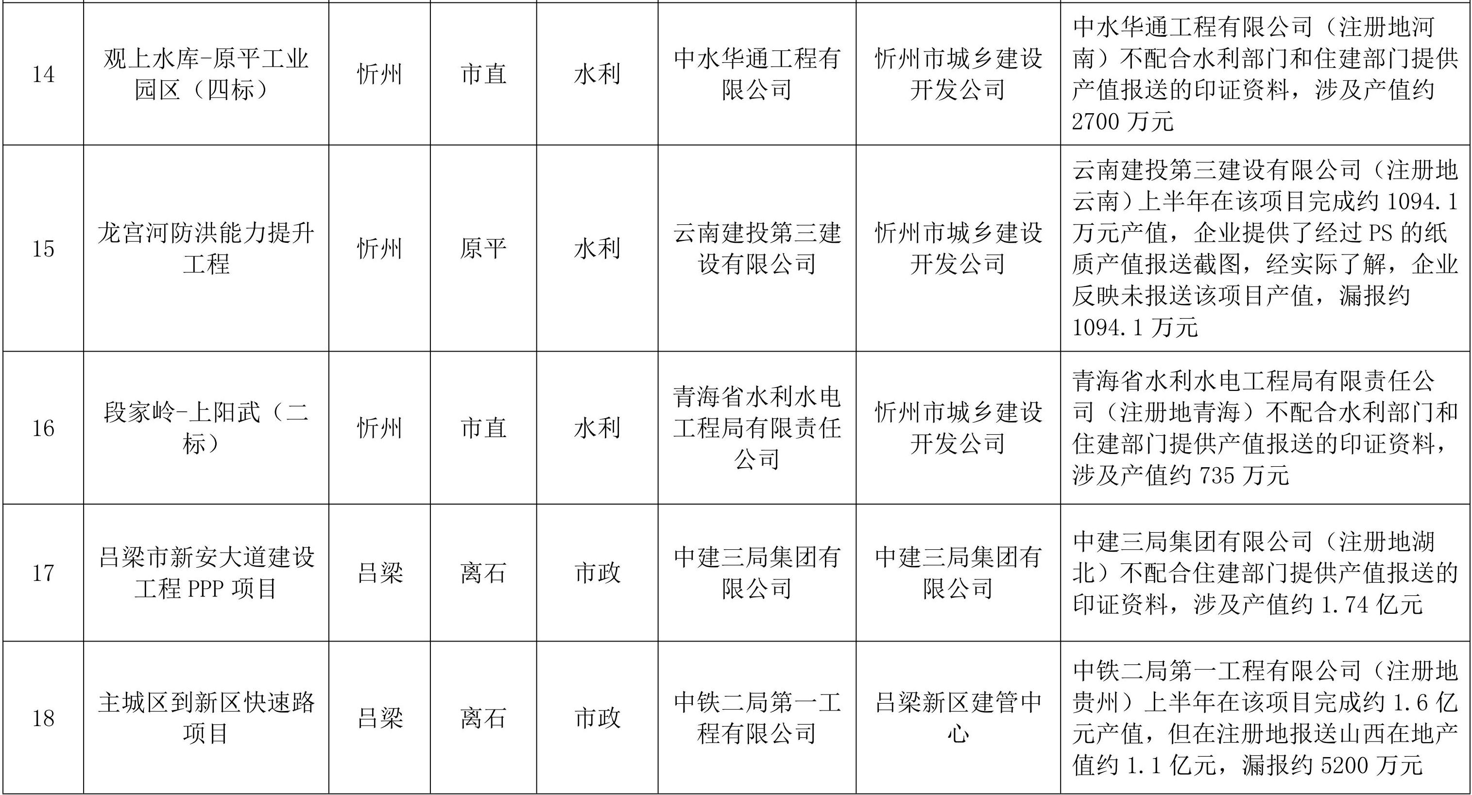 按照安排,省建筑業(yè)運(yùn)行工作專(zhuān)班于2025年7月28日至8月8日開(kāi)展了全省建筑業(yè)運(yùn)行情況督查檢查工作,實(shí)地核查了11個(gè)市38個(gè)縣(市、區(qū))和山西轉(zhuǎn)型綜合改革示范區(qū)的120個(gè)在建項(xiàng)目。督查中發(fā)現(xiàn)部分項(xiàng)目施工企業(yè)存在產(chǎn)值漏報(bào)、數(shù)據(jù)造假、不配合行業(yè)部門(mén)提供印證資料等問(wèn)題,違反了《中華人民共和國(guó)統(tǒng)計(jì)法》第八條“國(guó)家機(jī)關(guān)、企業(yè)事業(yè)單位和其他組織以及個(gè)體工商戶和個(gè)人等統(tǒng)計(jì)調(diào)查對(duì)象,必須依照本法和國(guó)家有關(guān)規(guī)定,真實(shí)、準(zhǔn)確、完整、及時(shí)地提供統(tǒng)計(jì)調(diào)查所需的資料,不得提供不真實(shí)或者不完整的統(tǒng)計(jì)資料,不得遲報(bào)、拒報(bào)統(tǒng)計(jì)資料”規(guī)定,無(wú)法真實(shí)反映我省建筑業(yè)在地產(chǎn)值情況,給國(guó)家和我省經(jīng)濟(jì)造成損失。