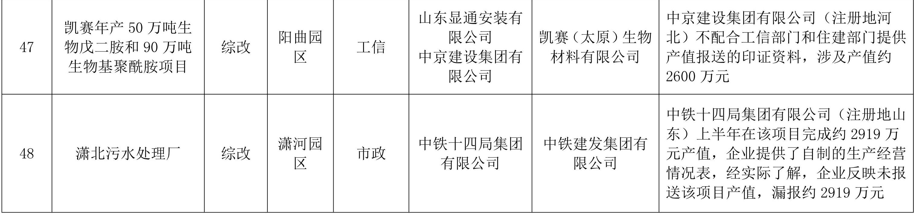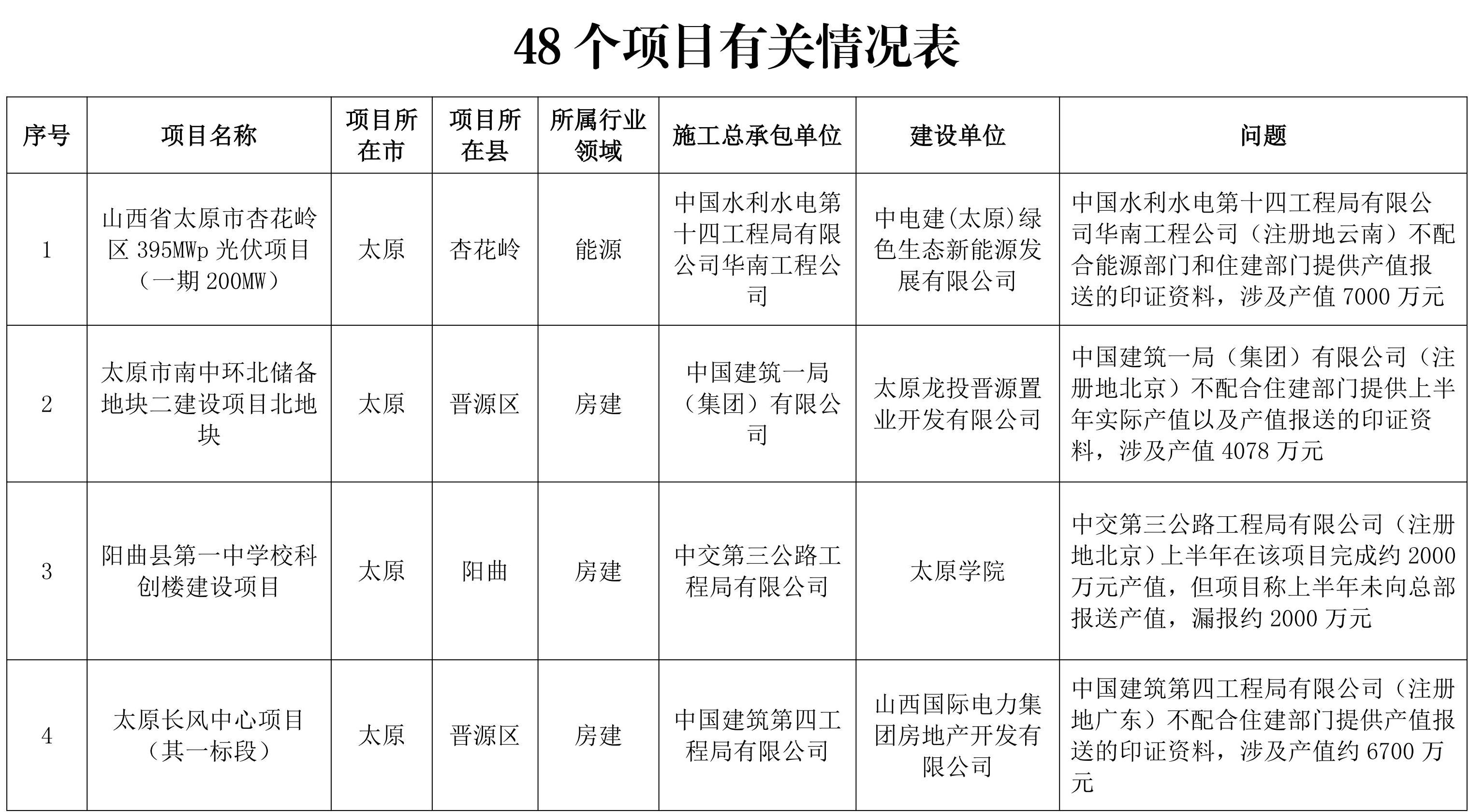 經(jīng)各市建筑業(yè)專(zhuān)班和項(xiàng)目負(fù)責(zé)人認(rèn)定,現(xiàn)將48個(gè)項(xiàng)目的有關(guān)情況予以公布。各市建筑業(yè)專(zhuān)班要緊盯問(wèn)題,做好“回頭看”,確保漏報(bào)產(chǎn)值在三季度如實(shí)報(bào)送。