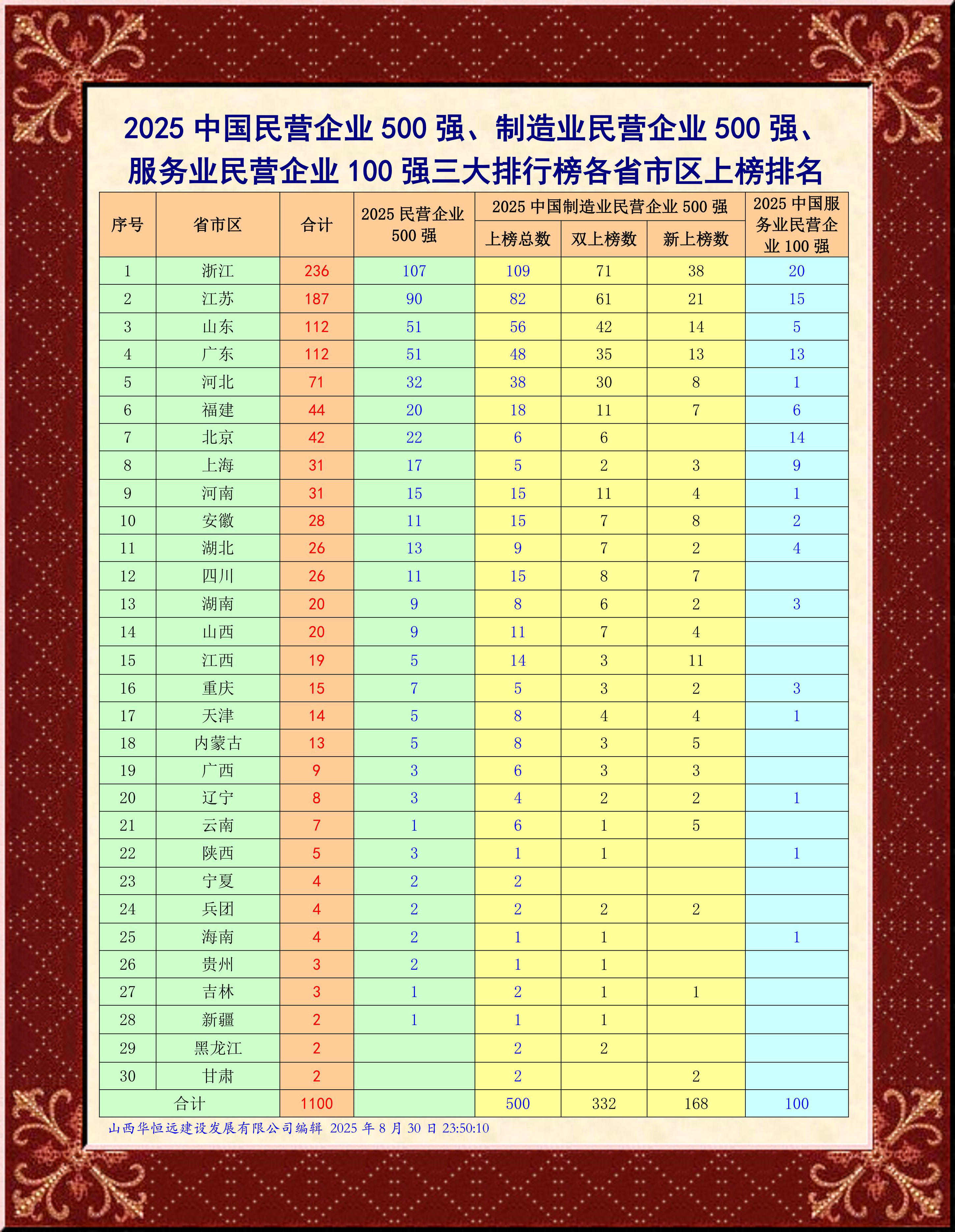 山西上榜2025年中國制造業(yè)民營企業(yè)500強(qiáng)名錄