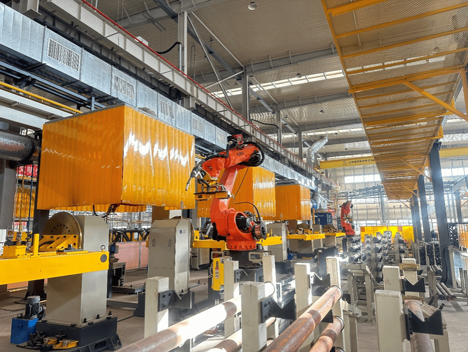 工廠占地面積300.31畝,建筑面積90669.58平方米,以“綠色制造、智能制造、可持續(xù)制造”為核心理念打造現(xiàn)代化生產(chǎn)基地。不僅建有完備的智能化、數(shù)字化、自動化生產(chǎn)過程管理系統(tǒng),在工藝方法與工藝裝備上均采用國內(nèi)領先技術(shù),形成了能源管理、環(huán)保管理及產(chǎn)品全生命周期管理的綠色體系。配備11條智能化生產(chǎn)線與150余臺工業(yè)機器人,關(guān)鍵裝備數(shù)控化率達100%,全部生產(chǎn)設備數(shù)控化率達84.1%,實現(xiàn)了產(chǎn)品從下料、組對、焊接、涂裝到轉(zhuǎn)運全流程制造環(huán)節(jié)的自動化、智能化、數(shù)字化,配備 4 條粉末涂裝生產(chǎn)線, 產(chǎn)品生產(chǎn)安全高效環(huán)保。