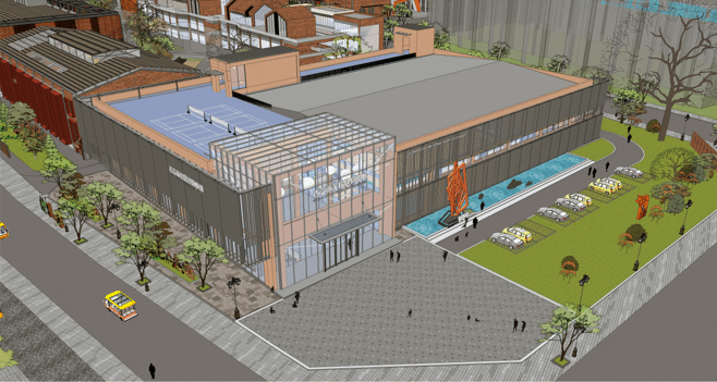 該項目坐落于古交市古東新城片區(qū),東接古鋼東路,北鄰古鋼中路,南靠濱河南路,采用EPC總承包模式建設。項目布局為地上兩層、局部地下一層的框架結構,結合地面部分的網(wǎng)架屋頂。