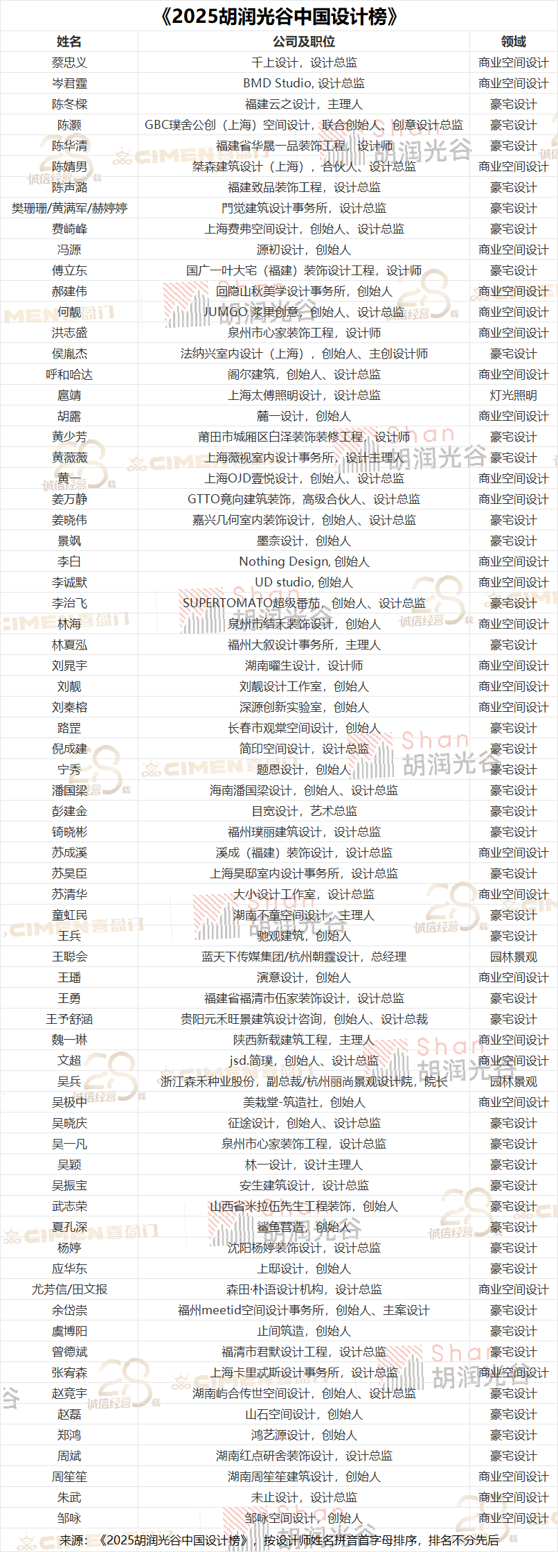 “胡潤研究院《高凈值人群消費心態(tài)及行為研究報告2025》顯示,高凈值人群的消費欲望及消費力仍顯著高于中產(chǎn),在整體的消費和品牌選擇上更傾向于消費升級。這表明,高凈值人群的消費更加注重品質化與個性化。在此背景下,胡潤光谷聯(lián)合業(yè)內(nèi)意見領袖設計師發(fā)起品牌投票,征集他們心目中最推薦的品牌,從專業(yè)視角共同打造并發(fā)布全新子榜單——《2025胡潤光谷設計師推薦品牌》?!?