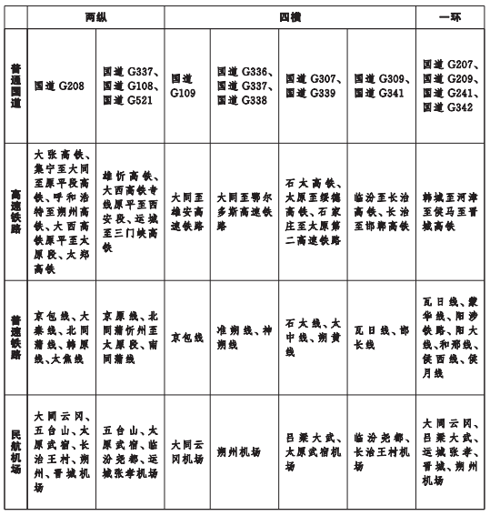 《綱要》提出,推進(jìn)綜合交通統(tǒng)籌融合發(fā)展。推進(jìn)各種運(yùn)輸方式統(tǒng)籌融合發(fā)展,統(tǒng)籌綜合交通運(yùn)輸通道規(guī)劃建設(shè),統(tǒng)籌綜合交通樞紐一體化規(guī)劃建設(shè),推動(dòng)城市內(nèi)外交通有效銜接,推進(jìn)城市內(nèi)外交通設(shè)施互聯(lián)、票制互通、安檢互信、信息共享、支付兼容。推進(jìn)交通基礎(chǔ)設(shè)施網(wǎng)與運(yùn)輸服務(wù)網(wǎng)、信息網(wǎng)、能源網(wǎng)融合發(fā)展。推進(jìn)區(qū)域交通運(yùn)輸協(xié)調(diào)發(fā)展,推進(jìn)山西中部城市群交通運(yùn)輸一體化發(fā)展,統(tǒng)籌城鄉(xiāng)交通運(yùn)輸一體化發(fā)展。推進(jìn)交通與郵政快遞、現(xiàn)代物流、旅游、國防戰(zhàn)備以及其他相關(guān)產(chǎn)業(yè)融合發(fā)展。