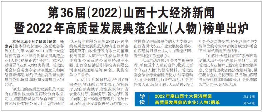 2022山西十大經(jīng)濟新聞系列評選活動高質量發(fā)展典范企業(yè)榜單