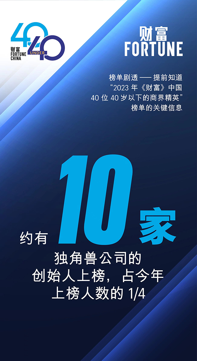 2023年《財(cái)富》中國(guó)40位40歲以下的商界精英榜單將于明日發(fā)布