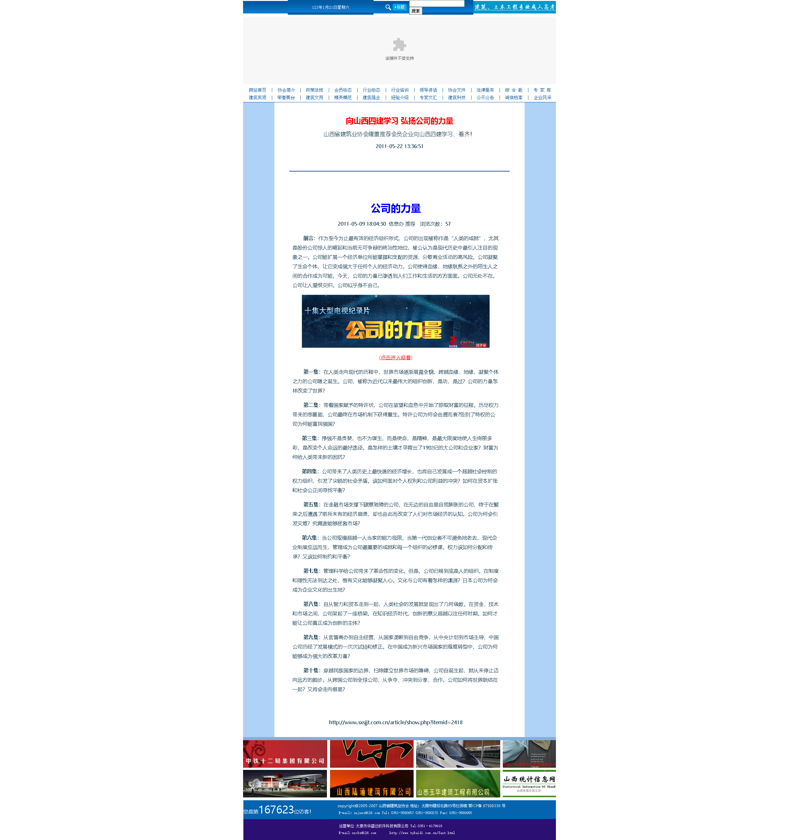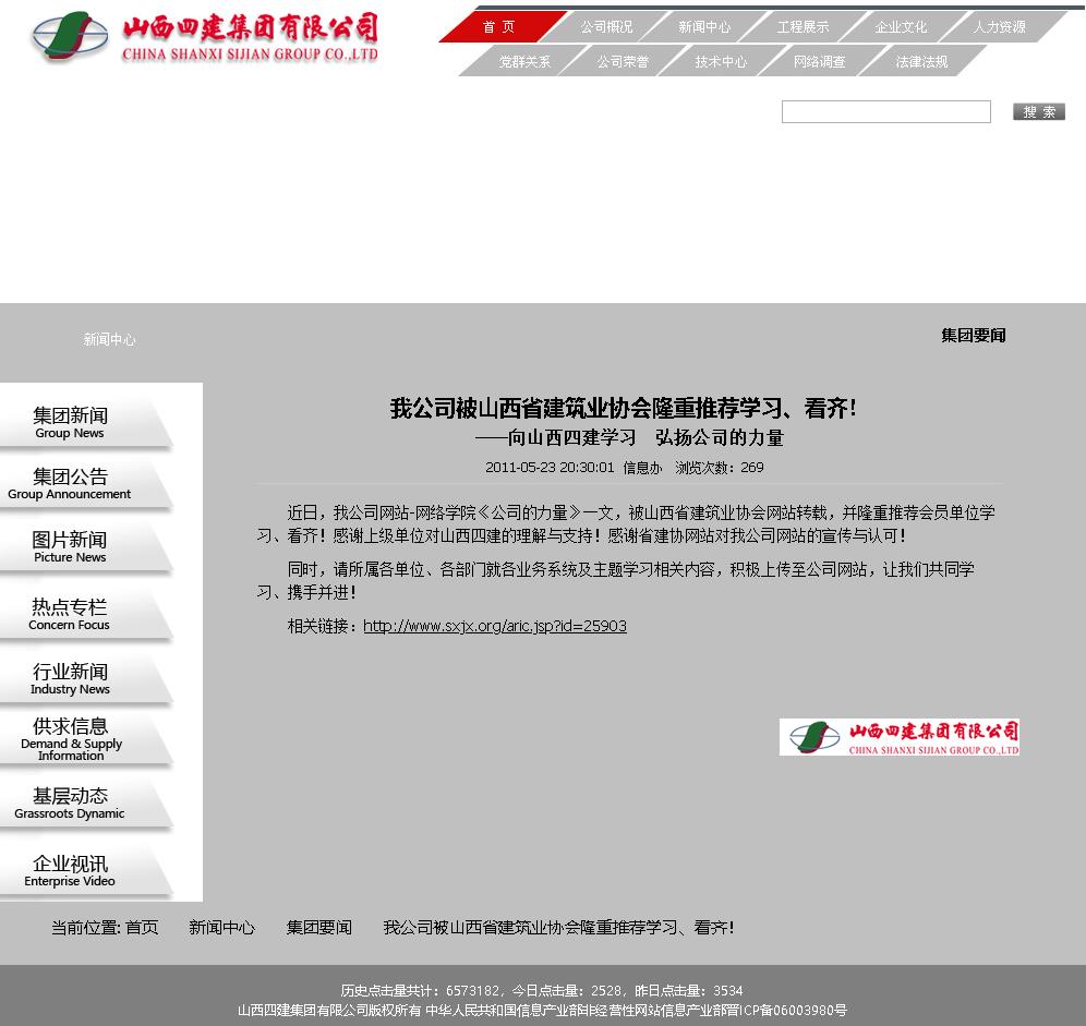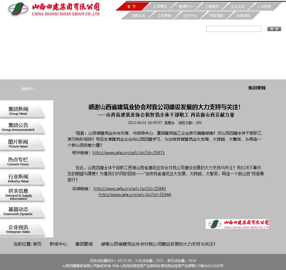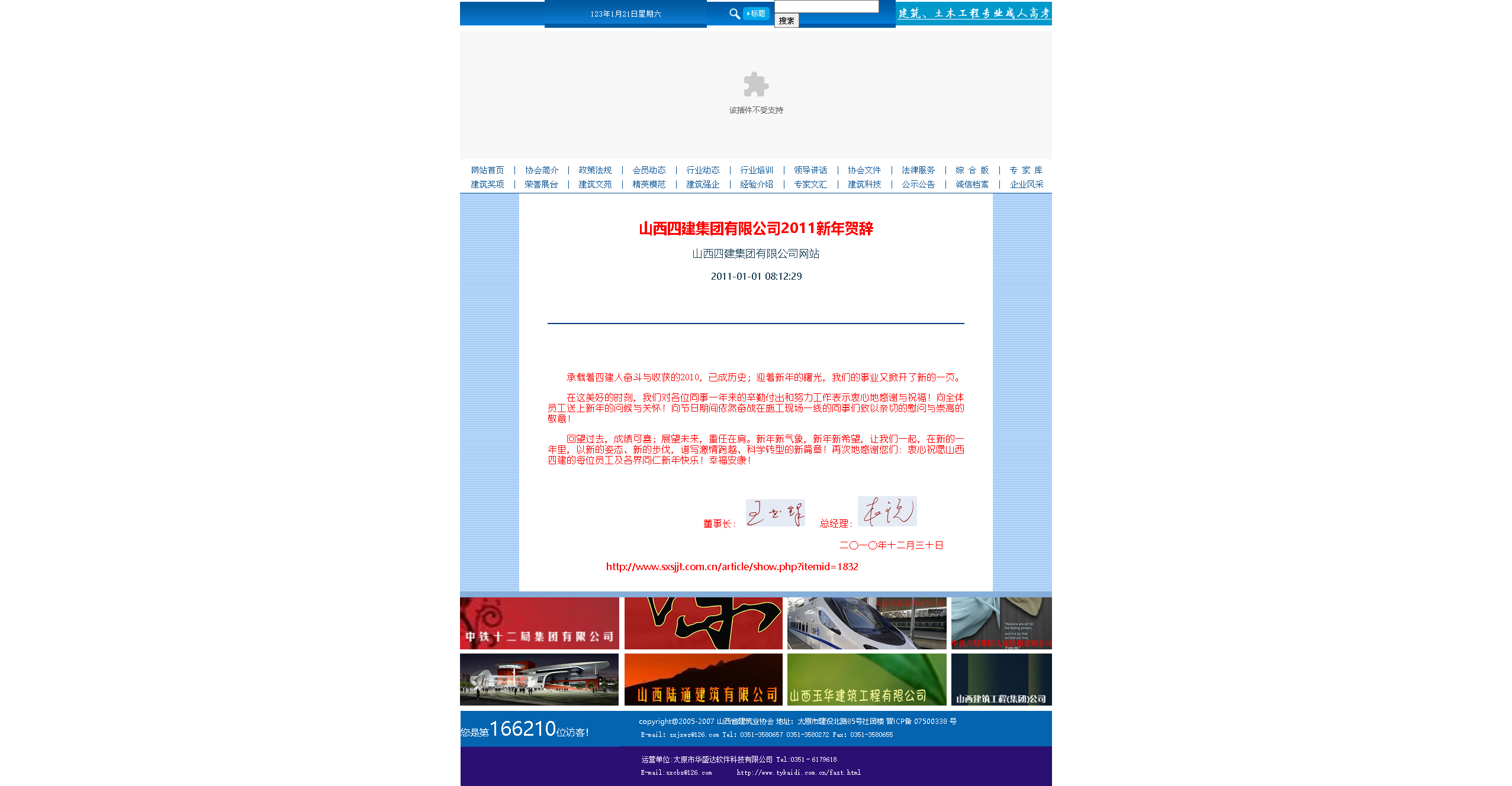 山西四建集團(tuán)有限公司作為山西建筑業(yè)行業(yè)標(biāo)桿,關(guān)注他們是我?guī)资甑牧?xí)慣,一直把這個(gè)企業(yè)的靈魂文化看成是行業(yè)的風(fēng)向標(biāo)和榜樣。尤其特別關(guān)注他們每年的新春賀詞,我在建協(xié)負(fù)責(zé)網(wǎng)站時(shí),多次表揚(yáng)他們,鼓勵(lì)他們,支持他們!你進(jìn)他們的網(wǎng)站看看,現(xiàn)在怎么樣,存在什么問題,如何解決?你有什么感悟,有什么高明的真知灼見呢?