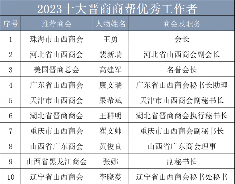 王勇-2023晉商商幫十大優(yōu)秀工作者 推薦機(jī)構(gòu)珠海市山西商會