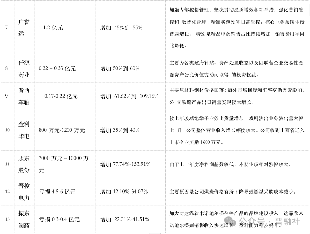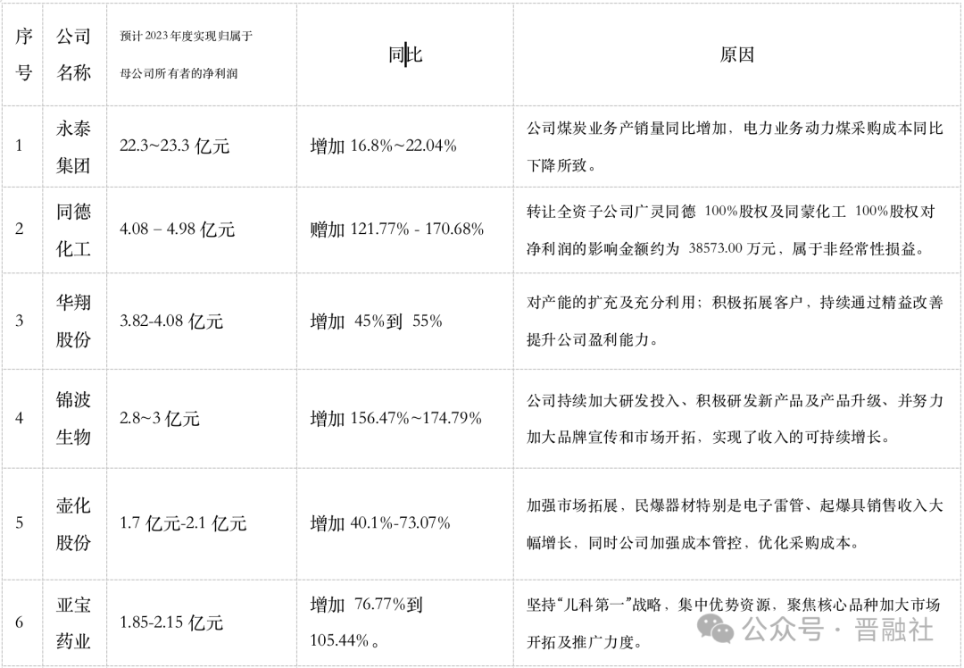 A股2023年業(yè)績(jī)預(yù)報(bào)披露期結(jié)束,據(jù)晉融社不完全統(tǒng)計(jì),我省41家A股上市公司中有25家披露了業(yè)績(jī)預(yù)告,業(yè)績(jī)預(yù)喜的居多,最高的預(yù)計(jì)盈利超20億;當(dāng)然,也不乏虧損企業(yè)。