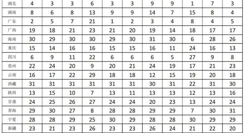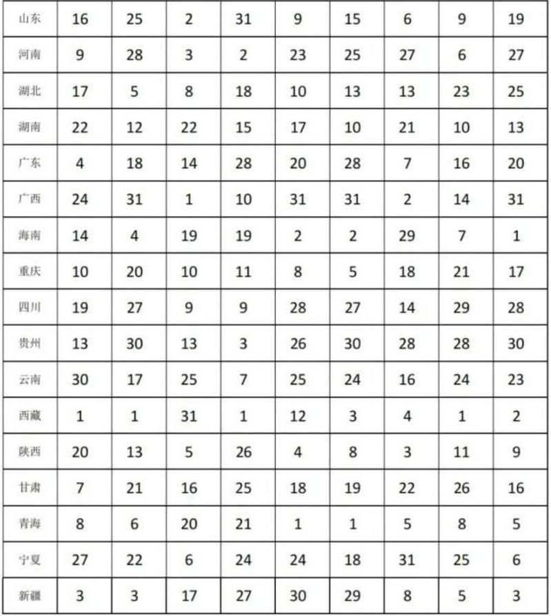 主要指標(biāo)總量在全國的位次