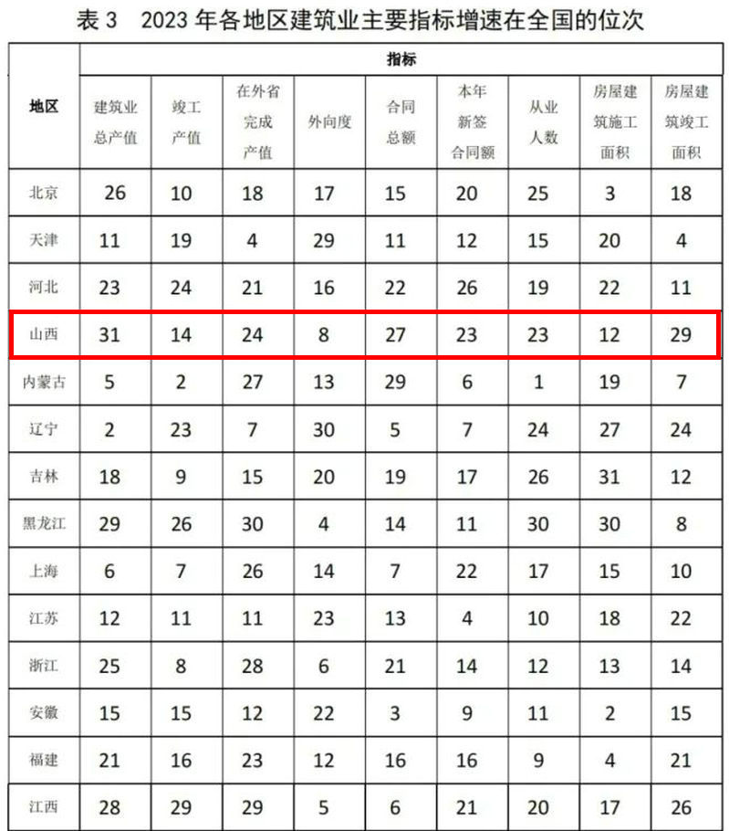 表3 2023年各地區(qū)建筑業(yè)