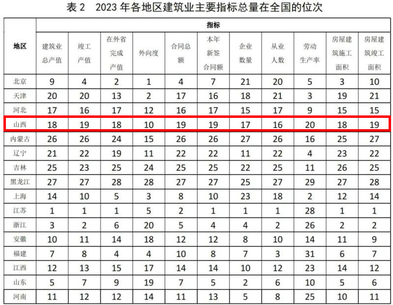 表2 2023年各地區(qū)建筑業(yè)