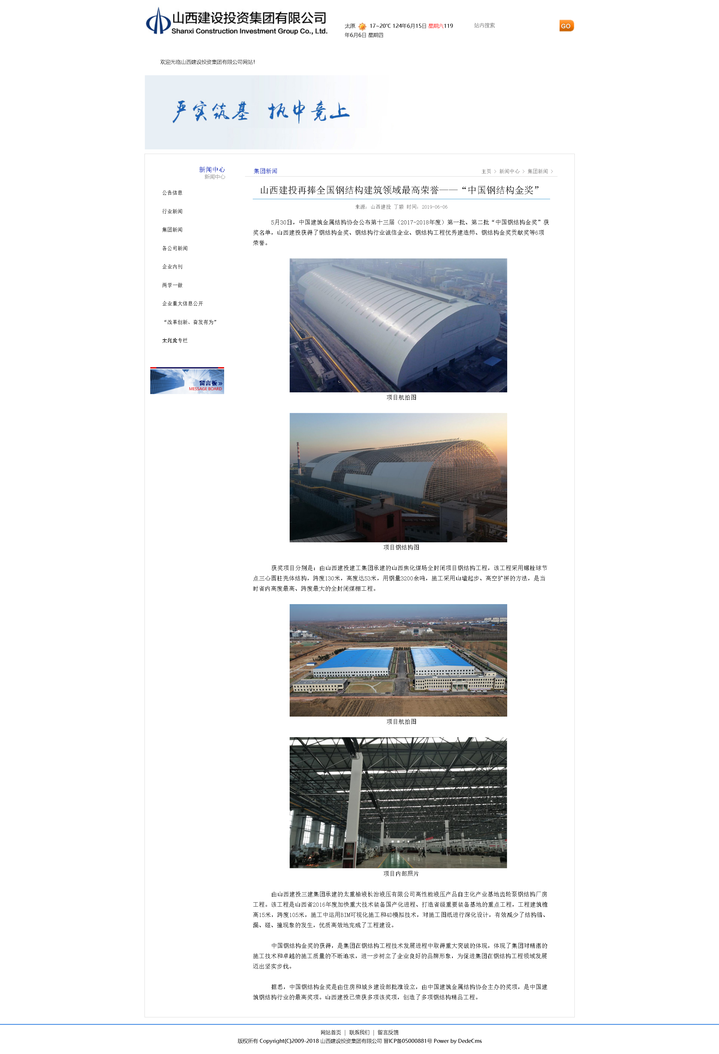 目前,山西三建集團(tuán)已累計(jì)榮獲五項(xiàng)中國(guó)鋼結(jié)構(gòu)金獎(jiǎng)。這些殊榮的獲得不僅是對(duì)三建鋼構(gòu)板塊信譽(yù)和綜合實(shí)力的認(rèn)可,更是對(duì)企業(yè)品牌效應(yīng)和建設(shè)項(xiàng)目品質(zhì)的充分肯定。同時(shí),這些獎(jiǎng)項(xiàng)不僅展示了集團(tuán)公司在工程管理、技術(shù)水平、施工規(guī)模等方面的綜合實(shí)力,也進(jìn)一步凸顯了集團(tuán)公司在推動(dòng)城市建設(shè)方面所作出的重要貢獻(xiàn)。未來(lái),集團(tuán)公司將倍加珍惜榮譽(yù),再接再厲,不斷提升管理水平、打造精品工程,為我國(guó)建筑鋼結(jié)構(gòu)事業(yè)的持續(xù)健康發(fā)展做出新的更大貢獻(xiàn)。(趙孟然)