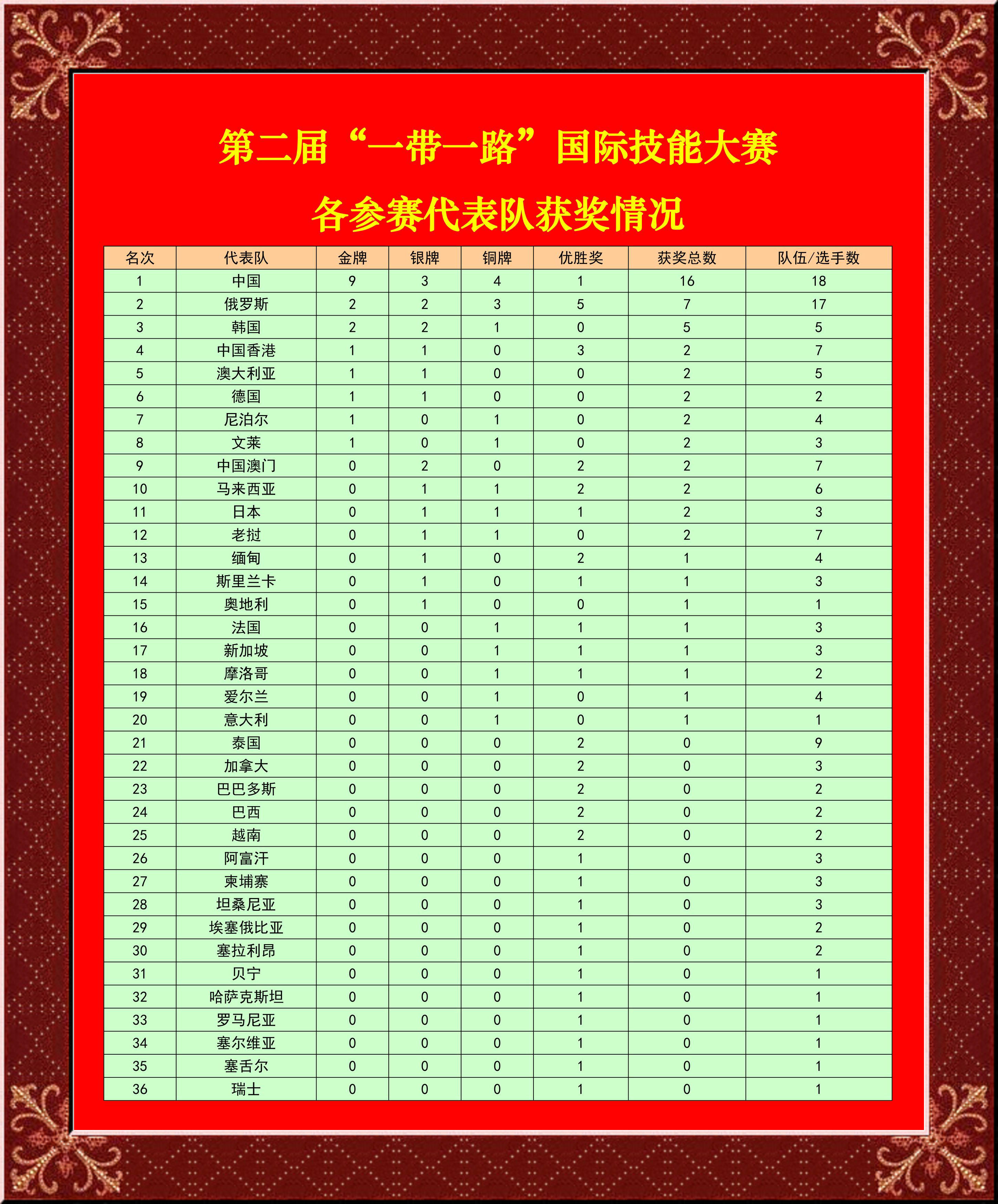 ——鍛煉了人才隊伍。本次大賽以賽代訓,為廣大選手參加“世賽”提供了實戰(zhàn)平臺;通過賽場競技,54名選手斬獲獎牌,成為“技能明星”,激發(fā)了全社會對技能人才的關注和認同,增強了技能人才的自信心和自豪感。大賽正成為“一帶一路”共建國家拓展人才選拔通道、提升人才培養(yǎng)能力的重要平臺。