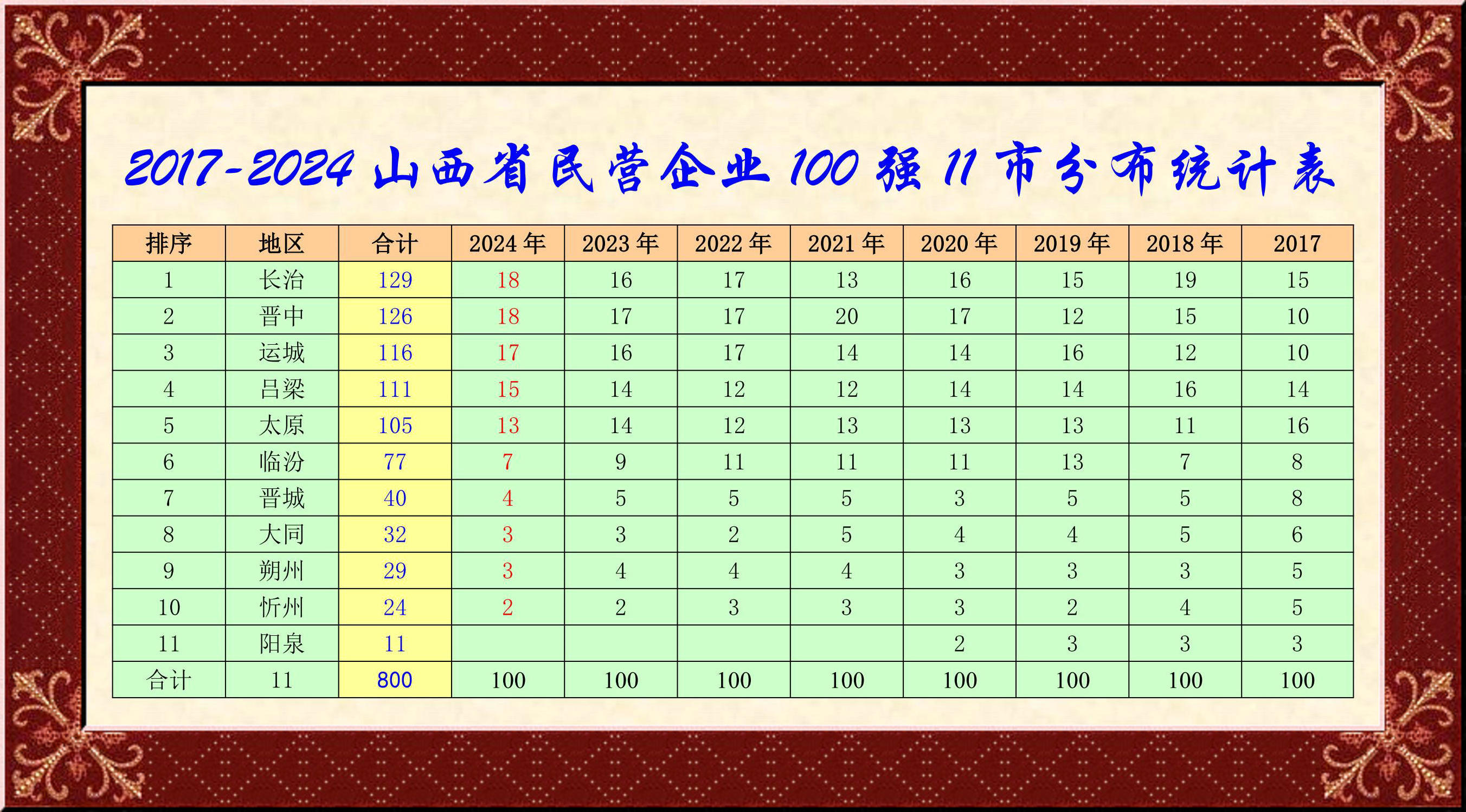 2024山西省民營企業(yè)服務(wù)業(yè)20強榜單