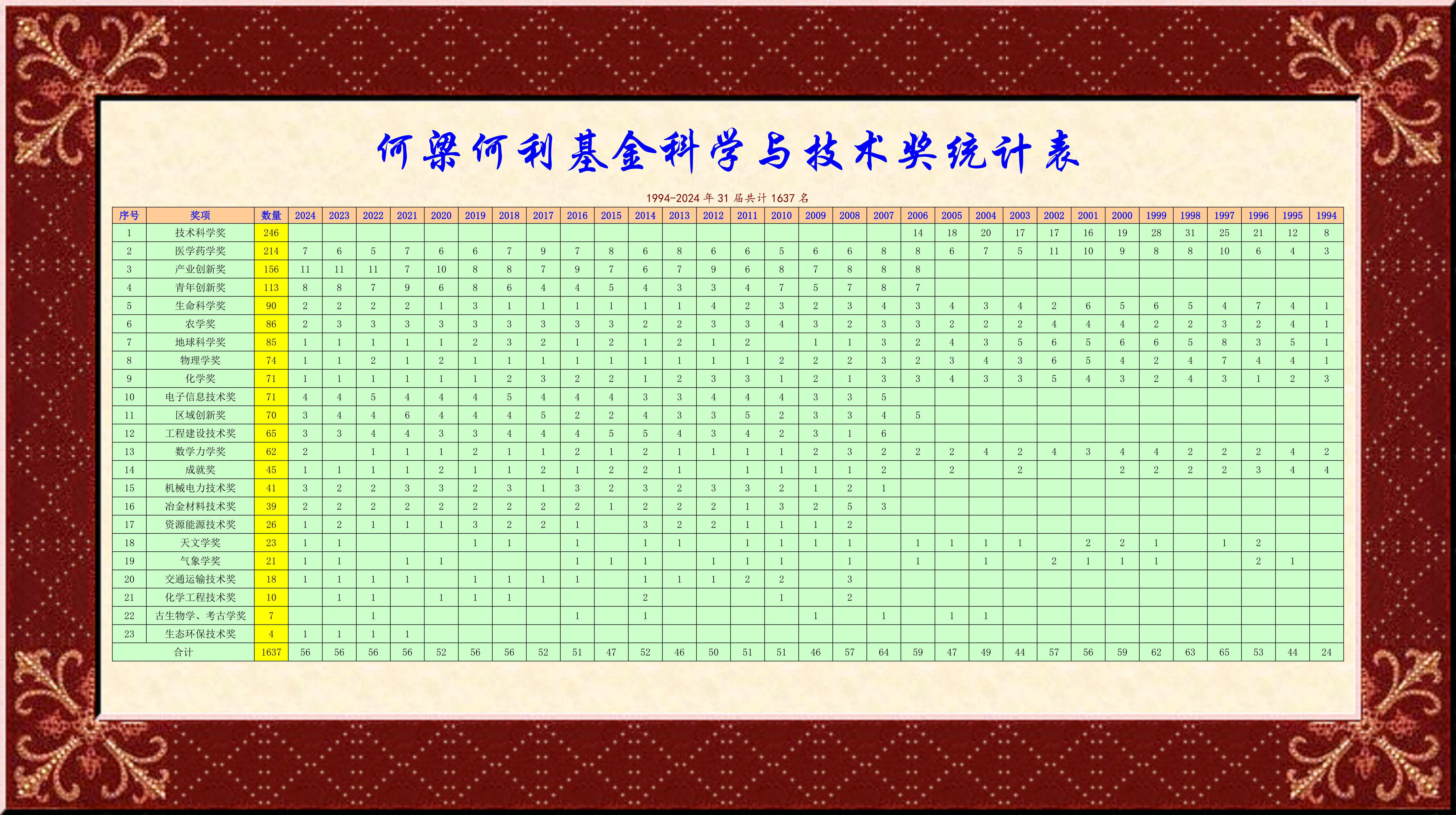 1994-2024何梁何利基金科學(xué)與技術(shù)獎(jiǎng)全榜單1637名
