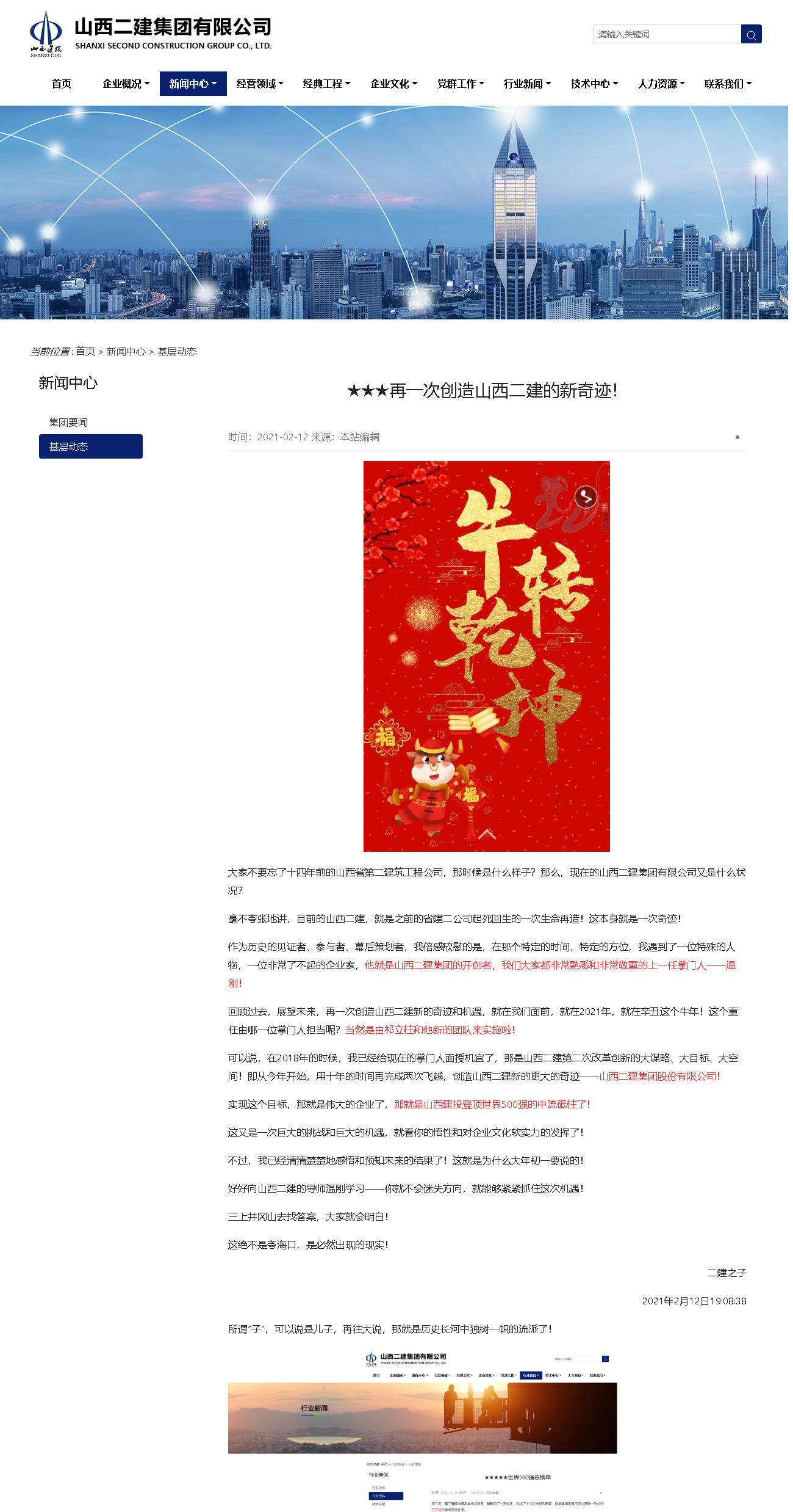 回顧過去,展望未來,再一次創(chuàng)造山西二建新的奇跡和機遇,就在我們面前,就在2021年,就再辛丑這個牛年!這個重任由哪一位掌門人擔當呢?當然是由祁立柱和他新的團隊來實施啦!