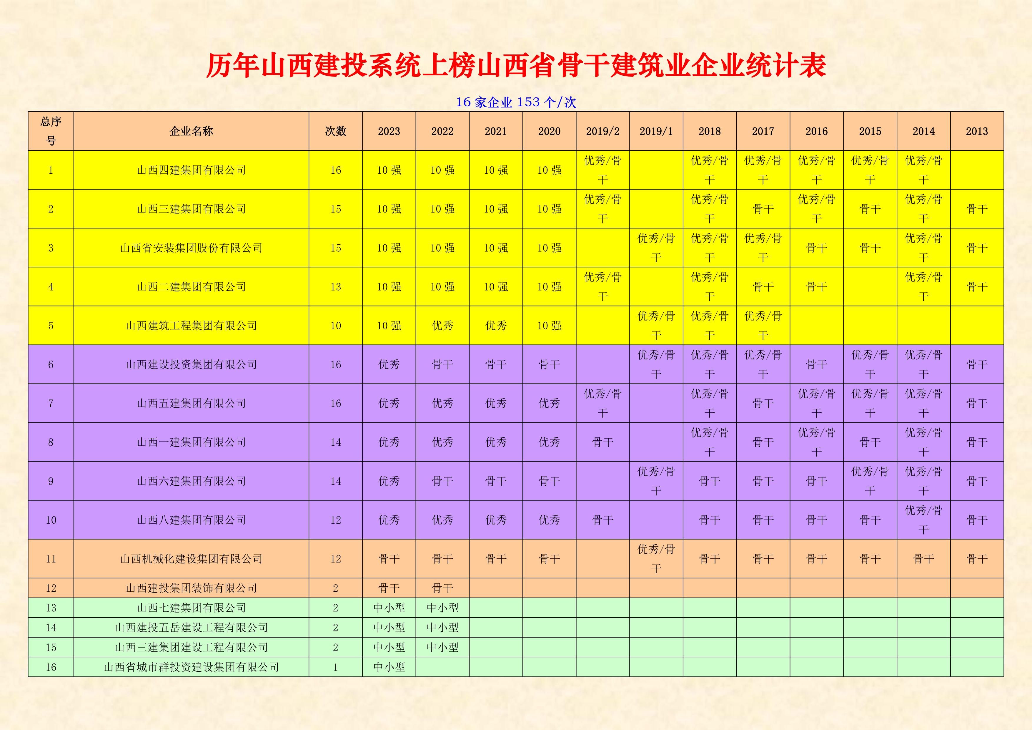 2013-2023山西省骨干建筑業(yè)企業(yè)名錄