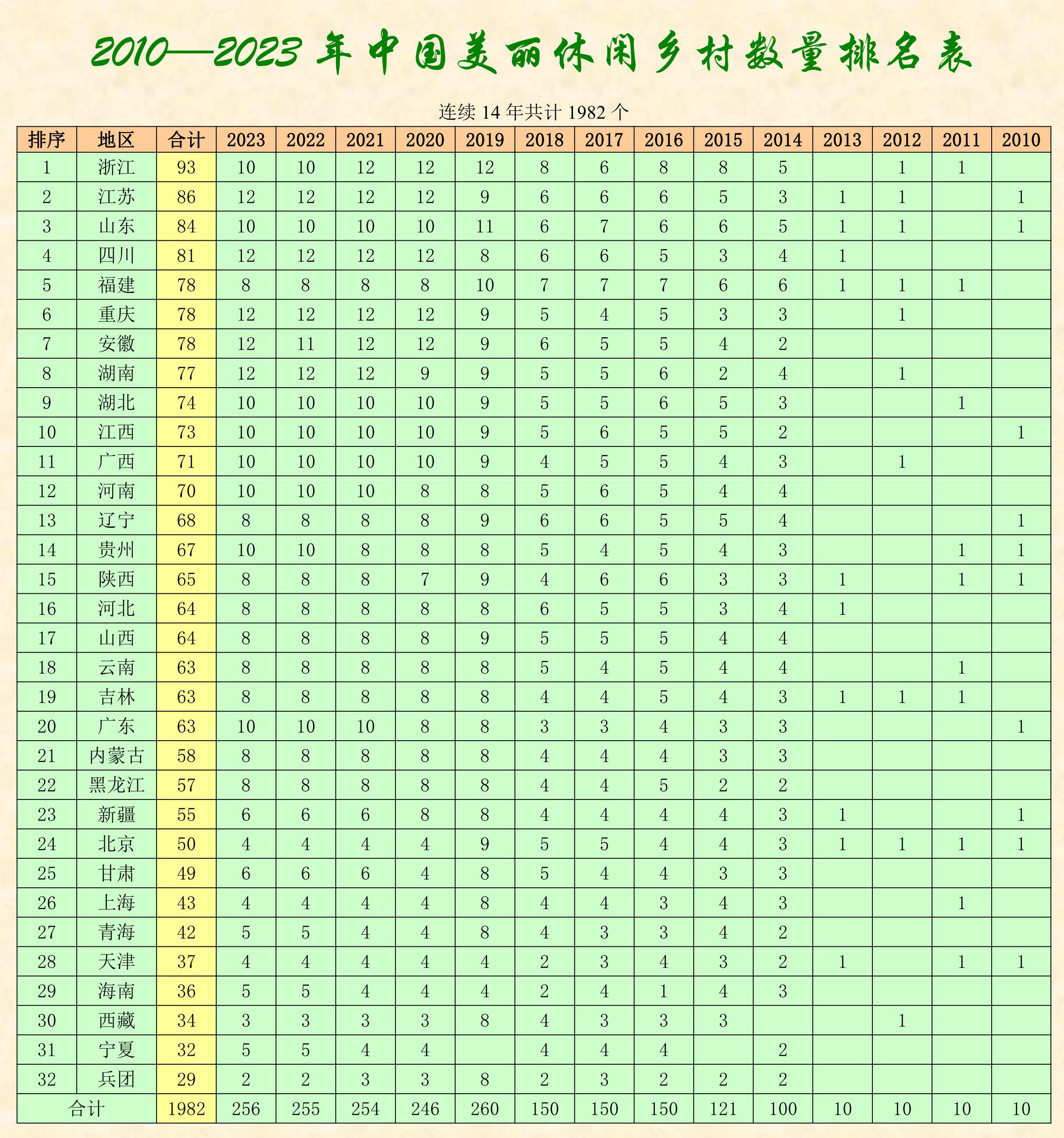 2010-2023中國(guó)美麗休閑鄉(xiāng)村名單1982個(gè)