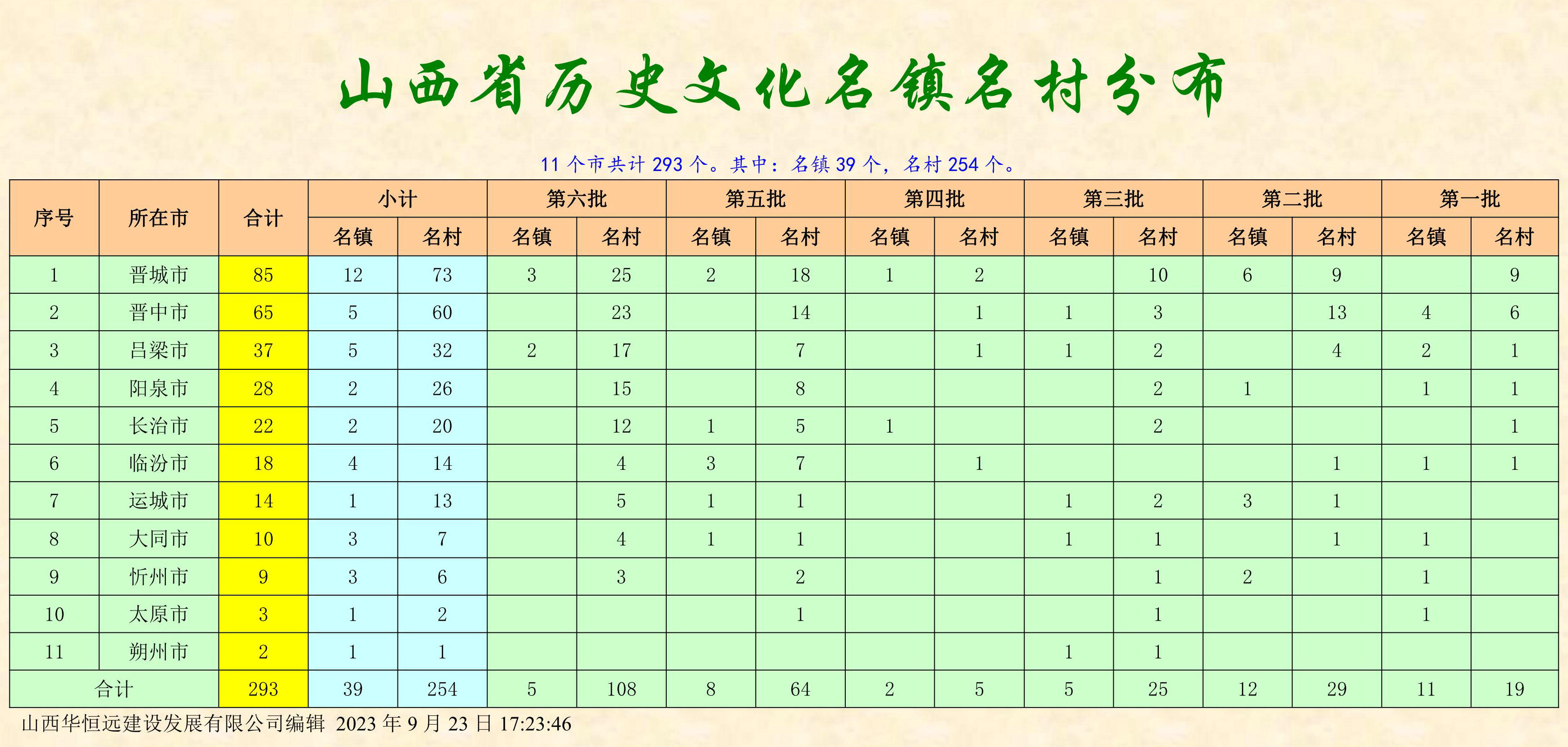 第一批至第六批共計(jì)293個(gè)。其中:名鎮(zhèn)39個(gè),名村254個(gè)。