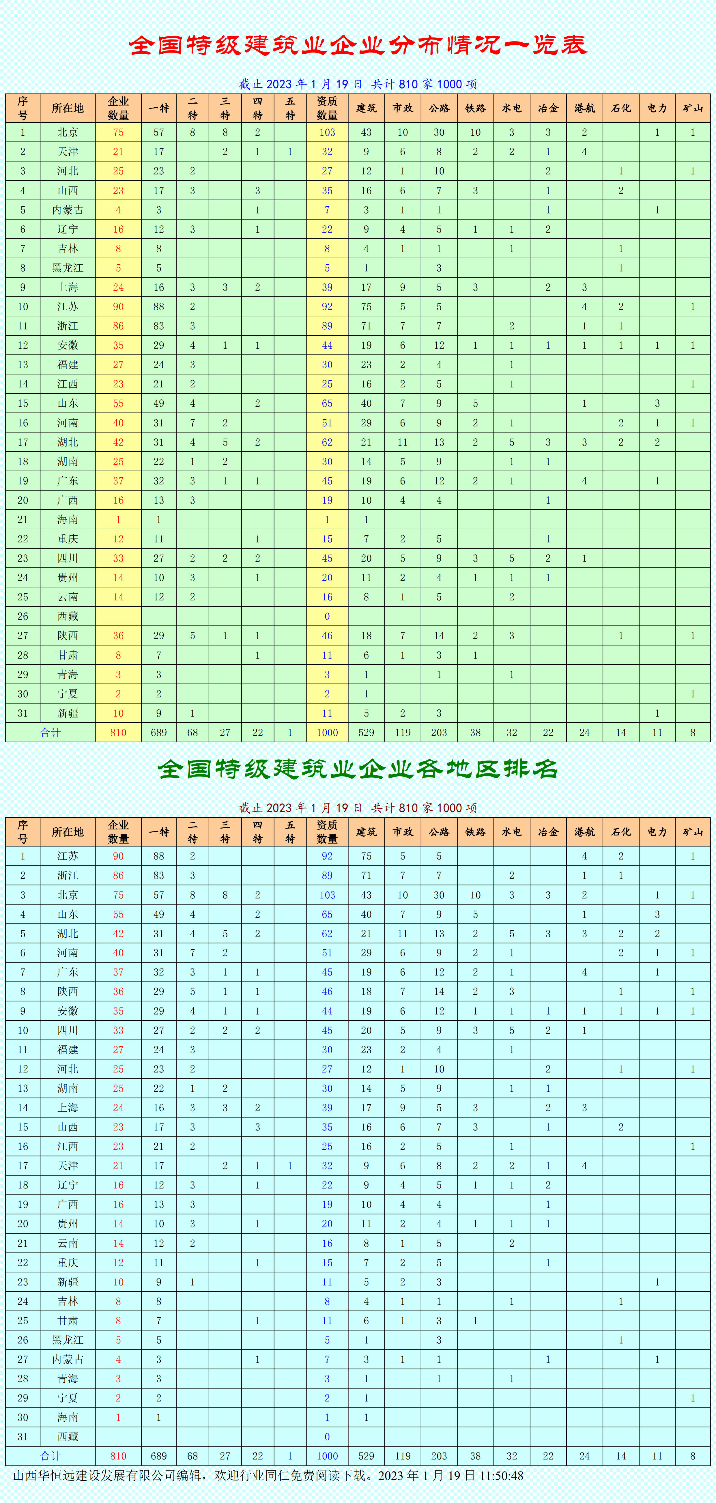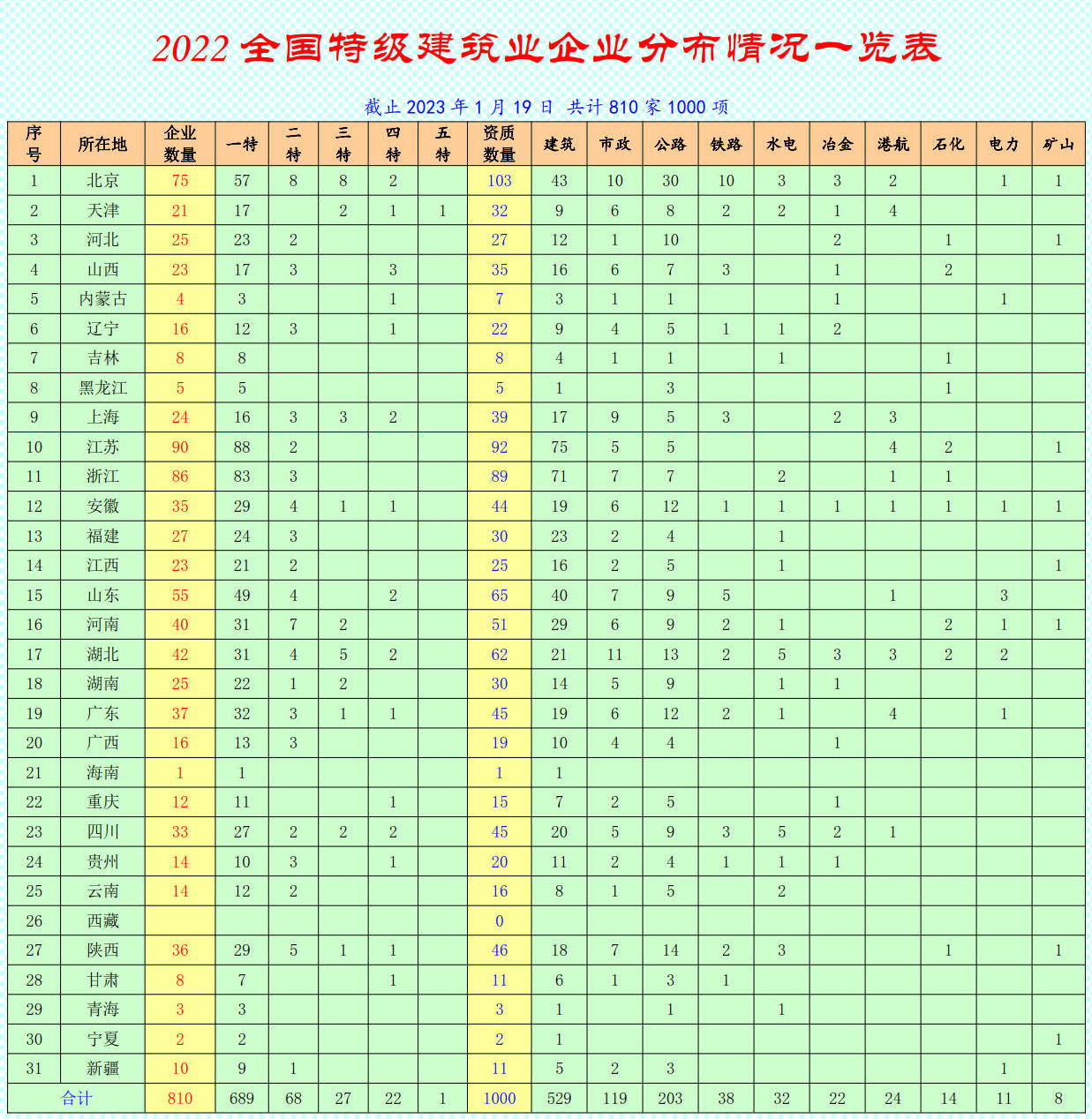 關(guān)注核準(zhǔn)特級(jí)資質(zhì)企業(yè),是我最大的事,堅(jiān)持不懈,持之以恒,一以貫之,已經(jīng)成為生命的重要組成部分!為什么?對(duì)行業(yè)的熱愛,對(duì)企業(yè)的忠誠,還有比這大的事情嗎?!不但關(guān)注,還要付諸行動(dòng),讓更多的人關(guān)注,更多的人參與,更多的人行動(dòng),這是我義無反顧和責(zé)無旁貸的責(zé)任與使命,讓大家輕松愉快,一目了然,就能看清楚建筑企業(yè)的佼佼者,行業(yè)翹楚,領(lǐng)軍大公司是哪個(gè)省,誰是第一!810家,1000項(xiàng)資質(zhì),多么吉祥的數(shù)字呀!