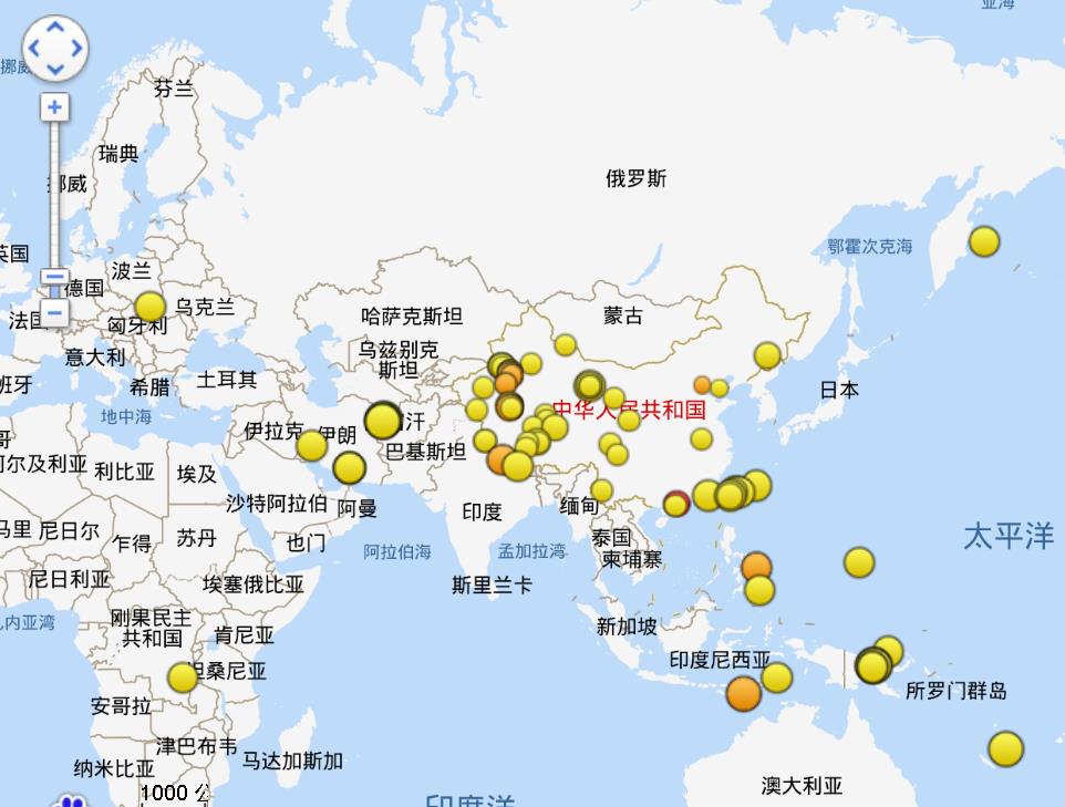 3. 智利中部沿岸近海 8.2 2015-09-17 06:54:31