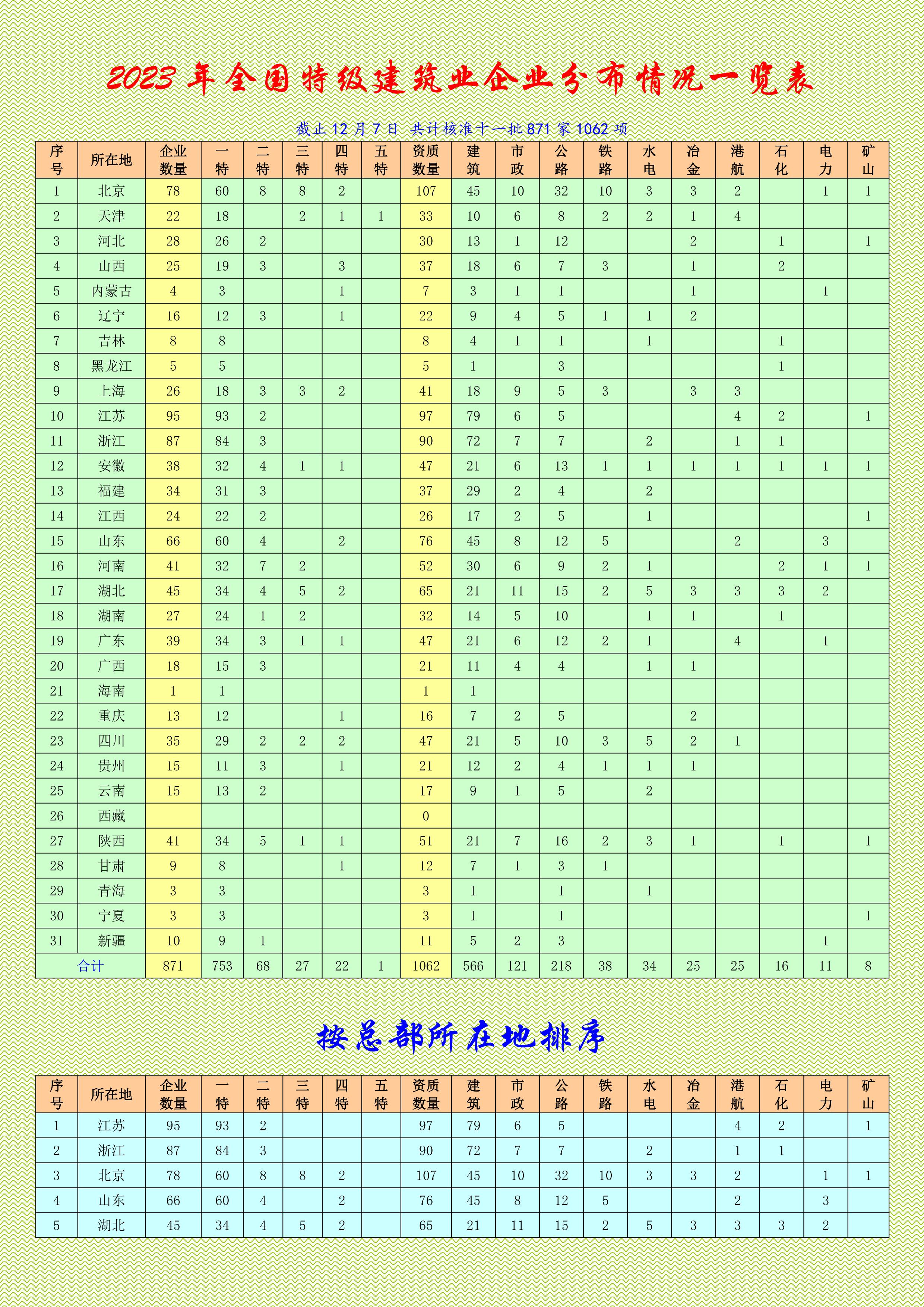 2023年全國特級資質建筑業(yè)企業(yè)名單