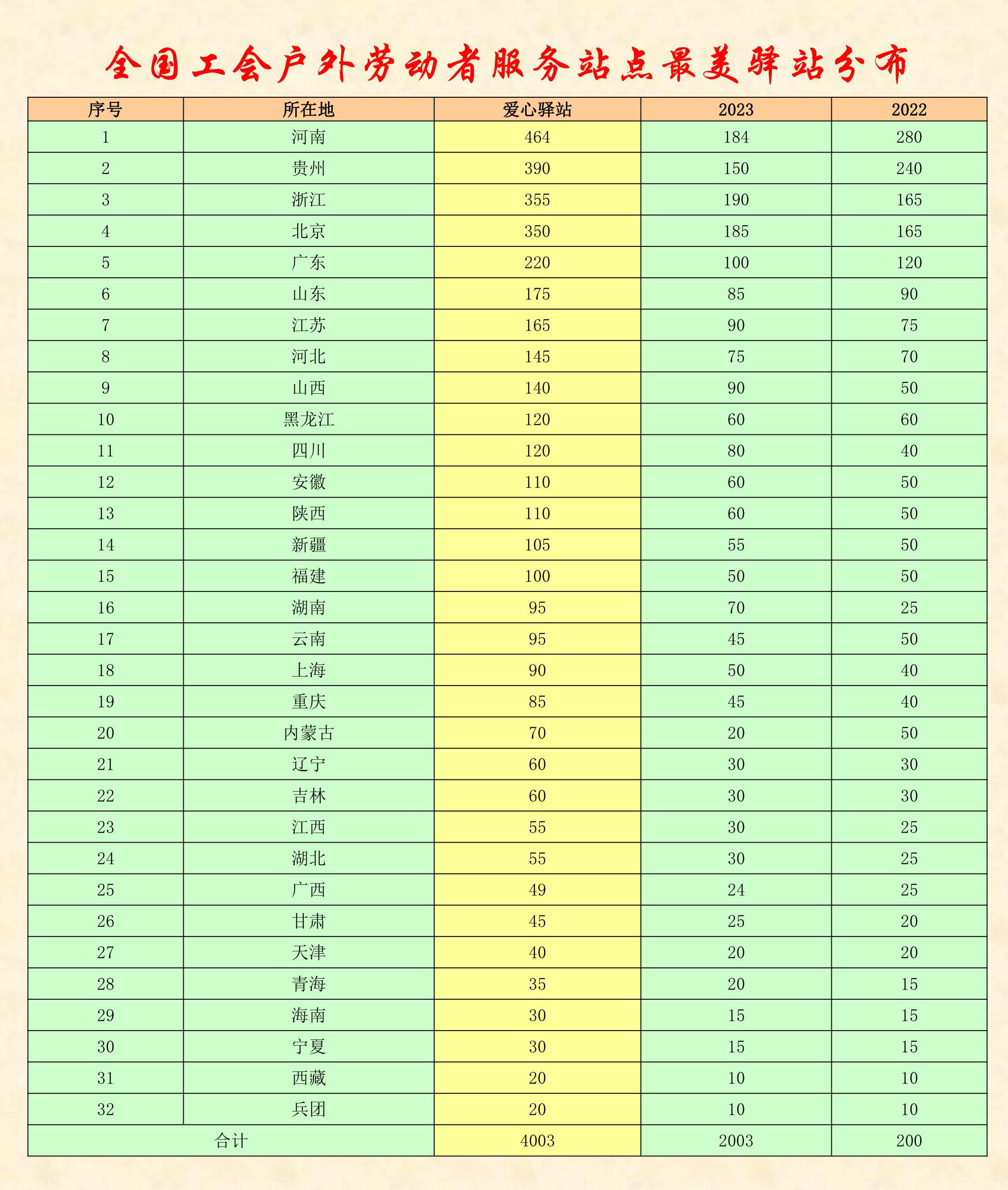近日,全國總工會發(fā)布2023年“最美工會戶外勞動者服務站點”(以下簡稱最美驛站)名單,北京市東城區(qū)朝陽門街道黨群服務中心戶外勞動者暖心驛站等2000個工會驛站被確認為2023年最美驛站。